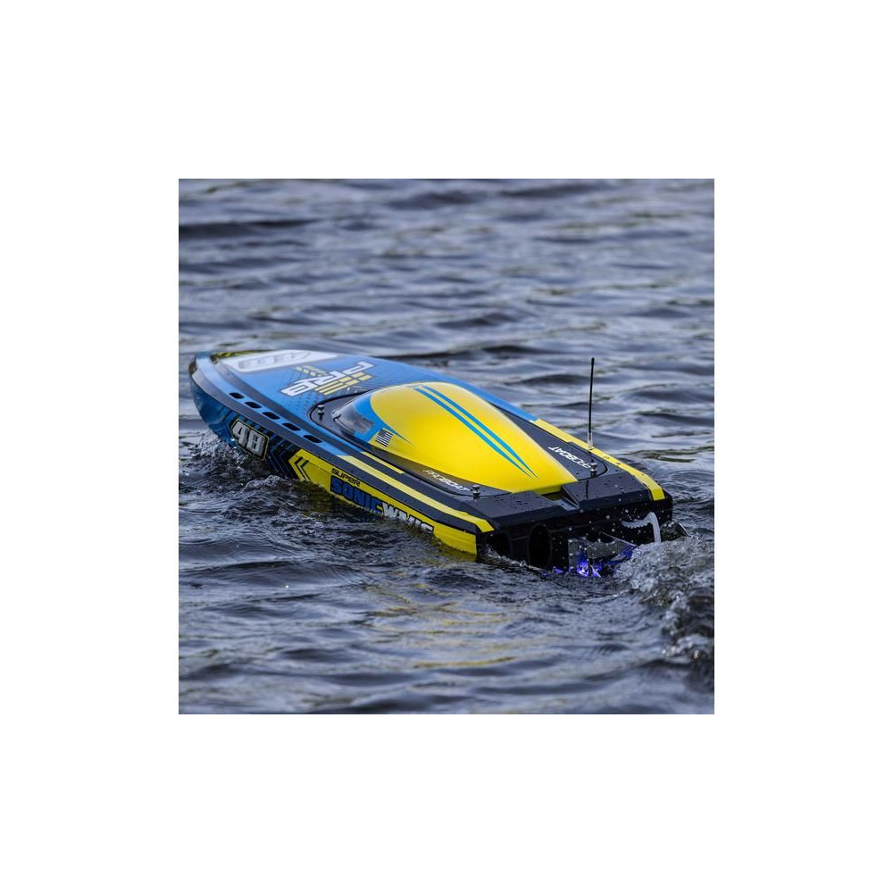 A Proboat Super Sonicwake 48" 8S 8S RTR motorcsónak óriás RC modellje, amely a méret és a teljesítmény határait feszegeti. Repülj a hajóval a víz felett akár 80 km/órás sebességgel! Plusz nagyszerű hajó grafika és LED-es víz alatti világítás! Automatikus visszafordulás, ha felborulsz.