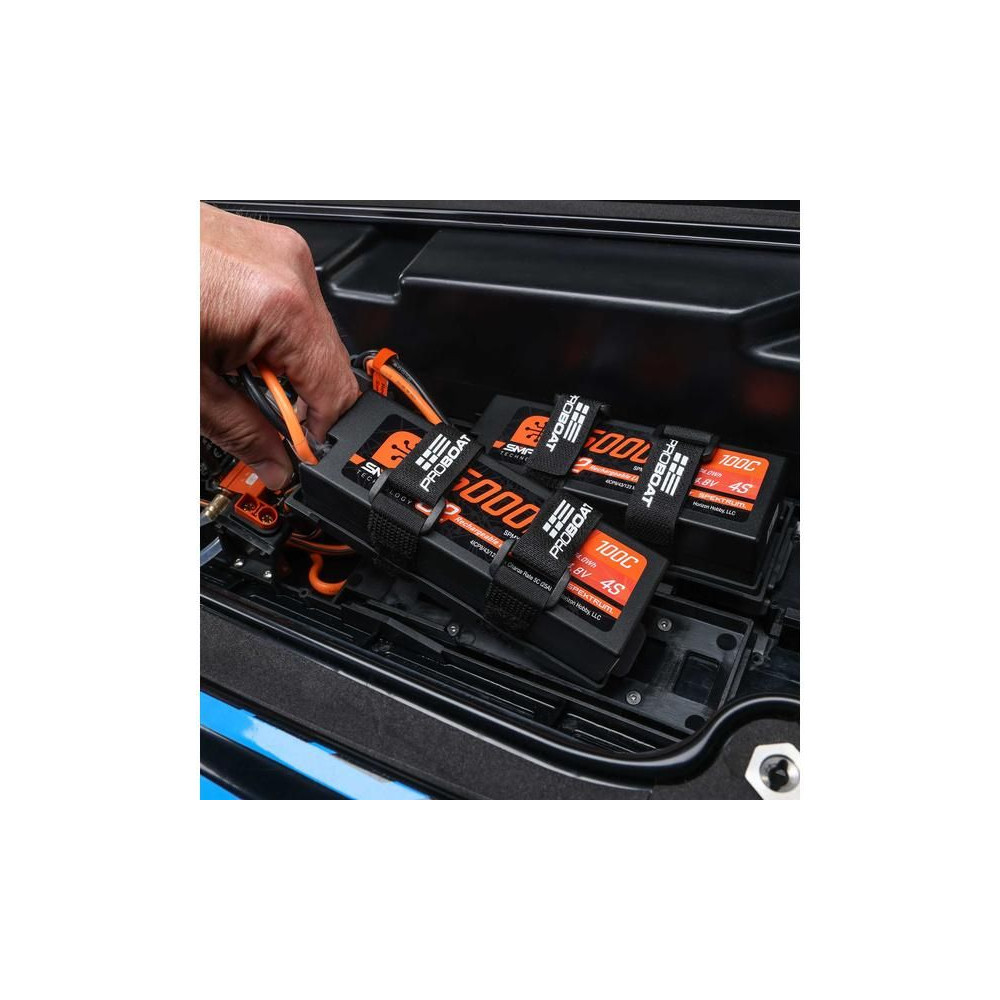 Az egyszerűen használható SSL (Strap, Slide, Lock) rendszer lehetővé teszi, hogy az akkumulátort a hajón kívül kényelmesen elhelyezett rekeszbe szerelje, majd csak csúsztassa a tálcát a hajótestbe, ahol az a helyére pattan. Az akkumulátor beszerelése csak másodperceket vesz igénybe! A Pro Boat kínál még egy nagyobb tálcát, amely akár 10 000 mAh kapacitású akkumulátorok befogadására is alkalmas.