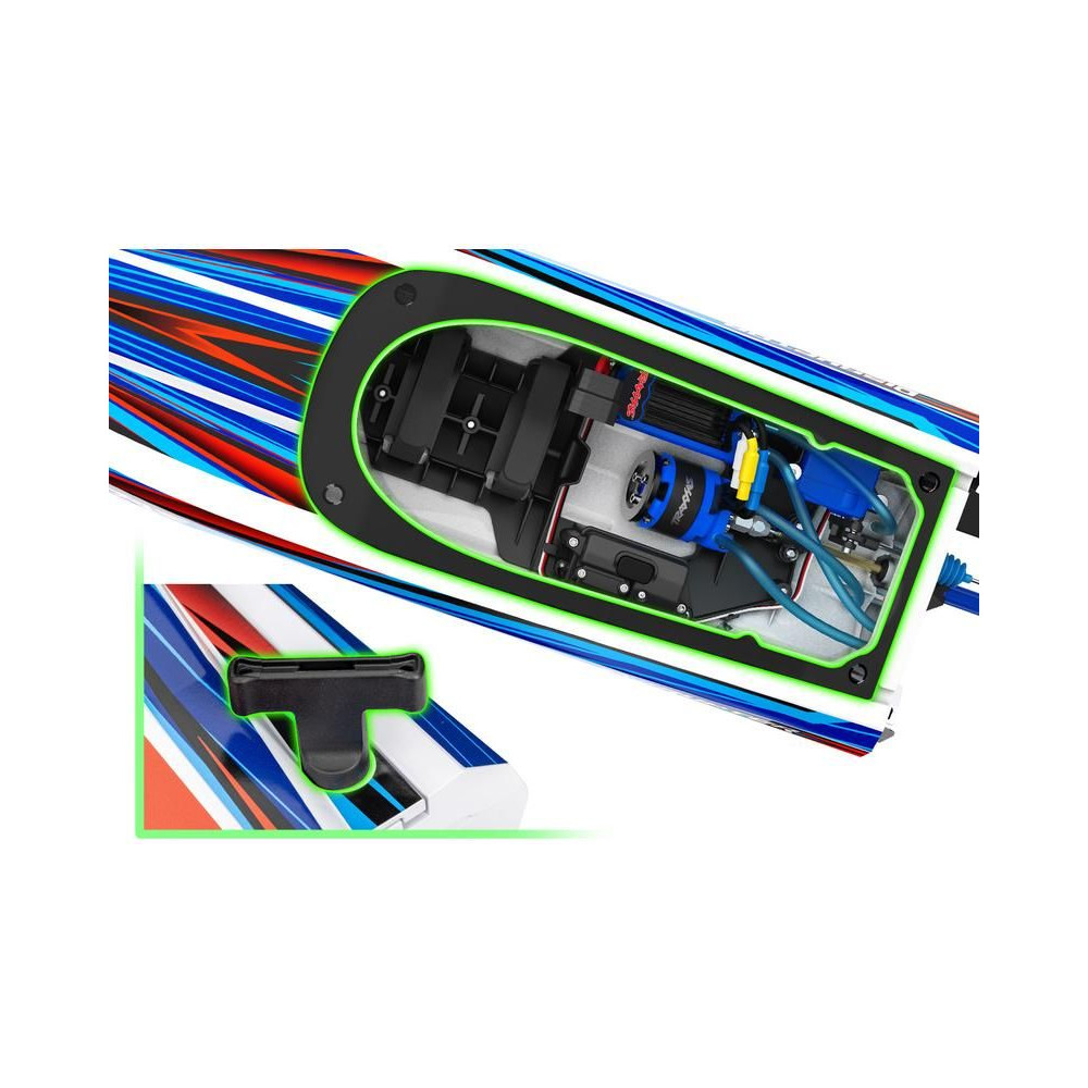 Traxxas Marine dugattyús külső menetes motor forgó burkolattal. Ez a kialakítás lehetővé teszi a hatékony hőelvezetést a tartón keresztül vízhűtéses rendszerrel. A beépített súlyok lehetővé teszik az önkiegyenesítő funkciót. Tápegység: 4S LiPo....