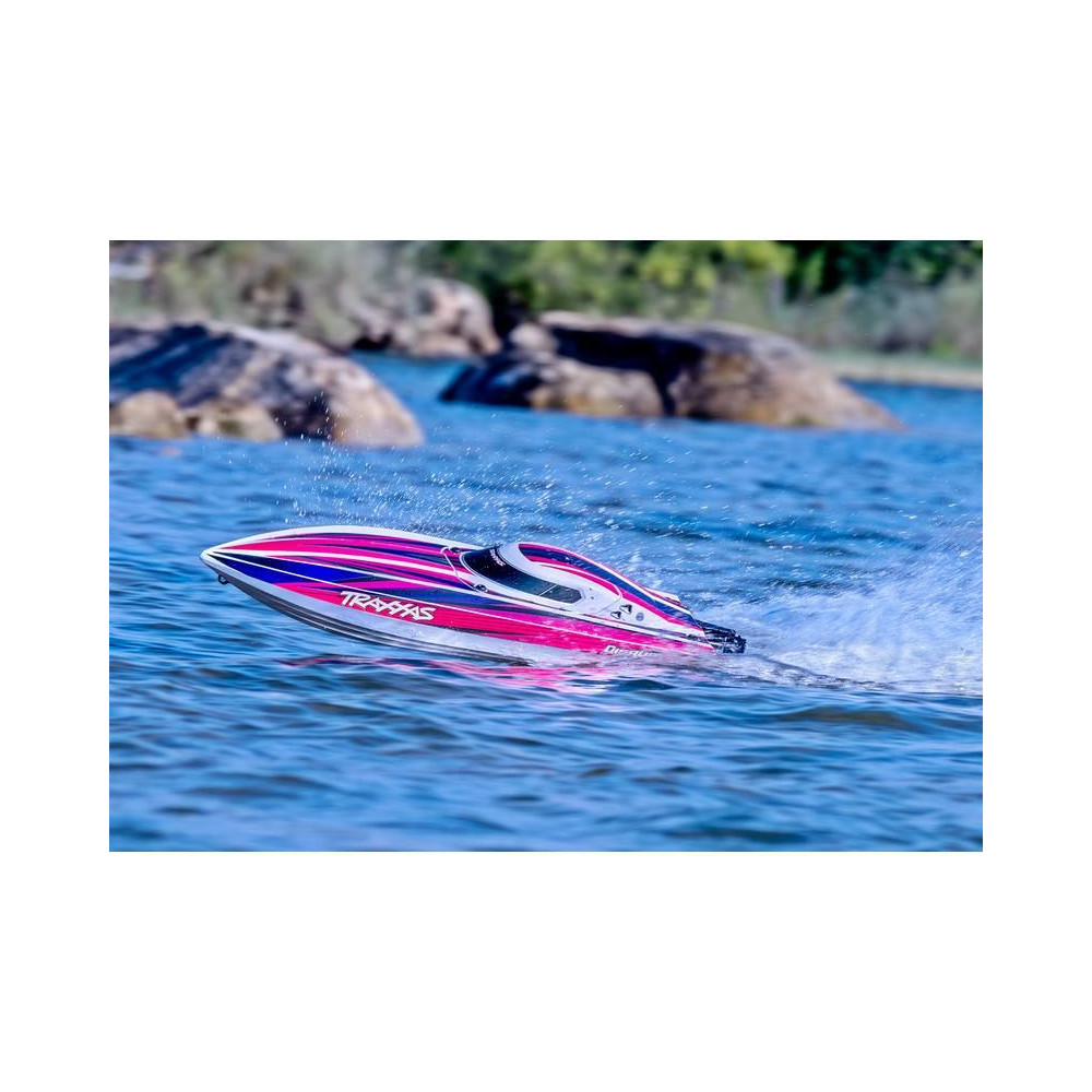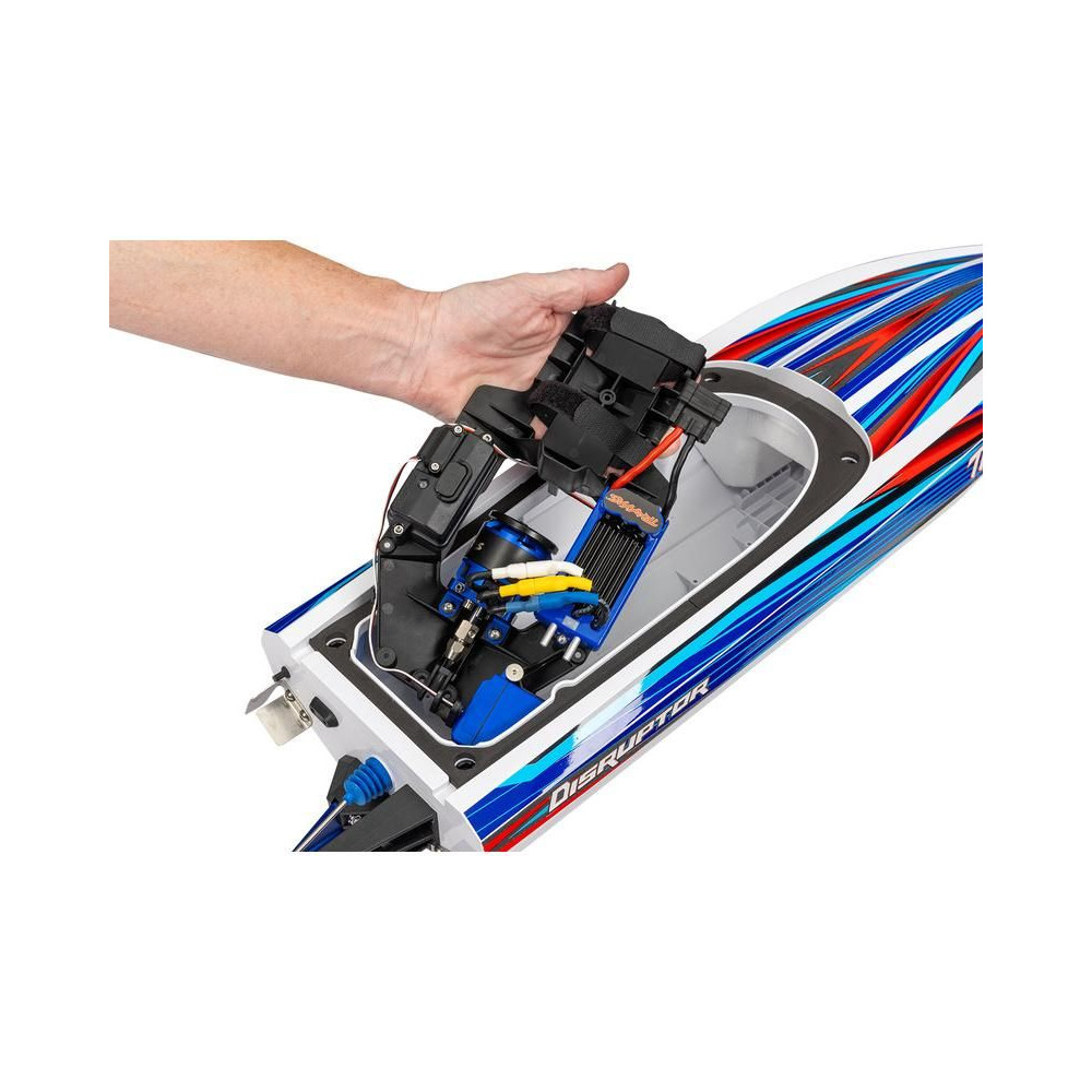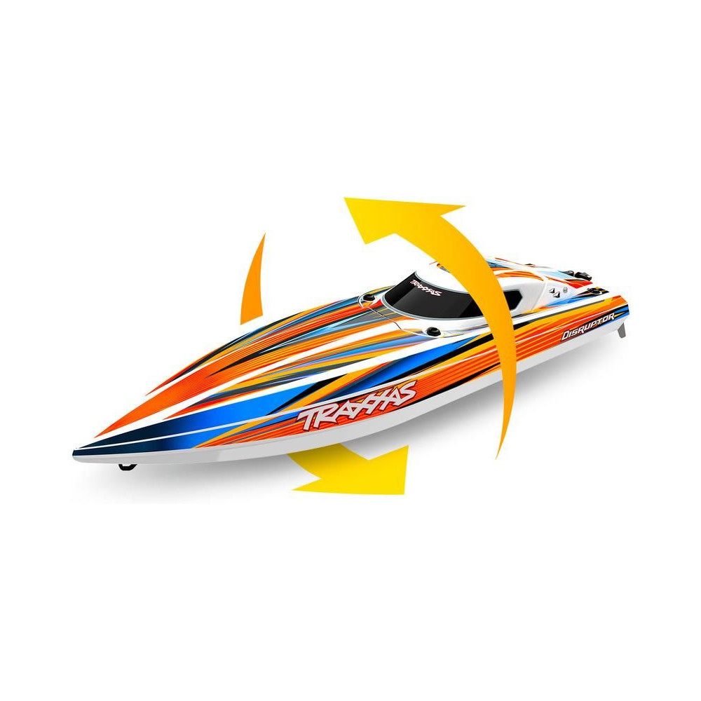 A Traxxas Disruptor 26" RC modellhajót tökéletesen úgy tervezték, hogy kisebb vízen fürge és manőverezhető, nagy nyílt vízen pedig gyors és stabil legyen. A Disruptor akár 64 mérföld/órás sebességet is elérhet, mégis "mutatványokat" lehet vele csinálni. Felborulás esetén önrendező funkcióval van felszerelve az automatikus megforduláshoz. Az agresszív gyorsulás és a maximális sebesség eléréséhez egyetlen Traxxas 4S LiPo akkumulátor ajánlott a tápellátáshoz.