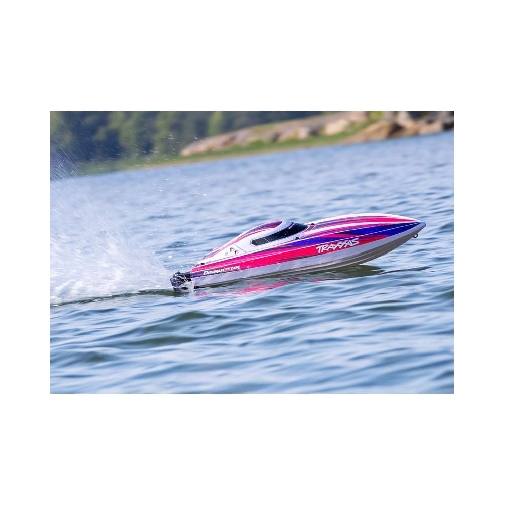 A Traxxas Disruptor fürge és agilis RC modellje 26" hosszúsággal és akár 64 km/h sebességgel. Tartós Deep-V ABS hajótest, erős 4S AC meghajtás és kettős vízhűtés. Új Rapid Right funkció azonnali fordulattal a motor lendületének felhasználásával. Csatolásmentes burkolat. TQ RC készlet.