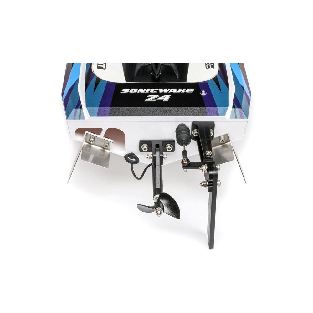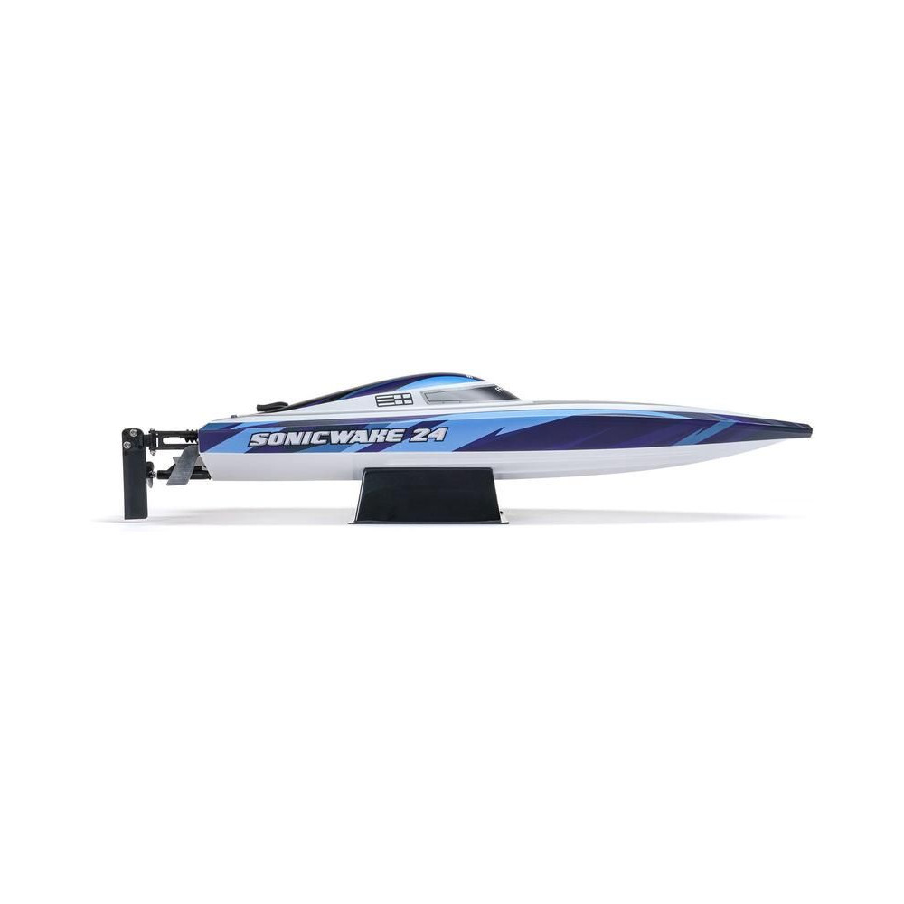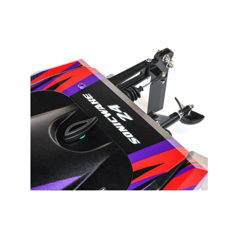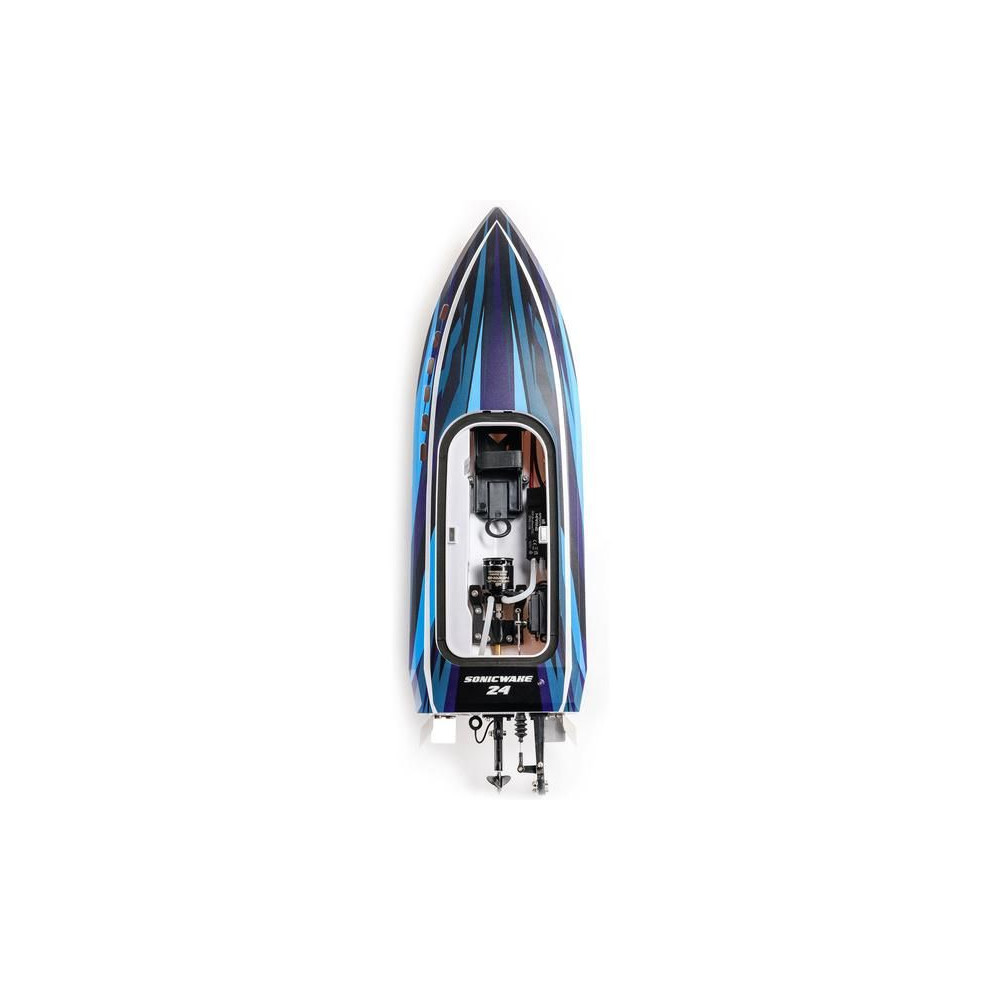 Közepes méretű Proboat Sonicwake 24" motorcsónak exkluzív önkiegyenesítő funkcióval. Vízhűtéses 2500 kV-os váltóáramú motor és Spektrum 50A szabályozó található benne, így akár 56 km/h sebességet is elérhet. A csomag mindent tartalmaz, amire szükséged van, beleértve egy 3S LiPo akkumulátort és egy USB töltőt.