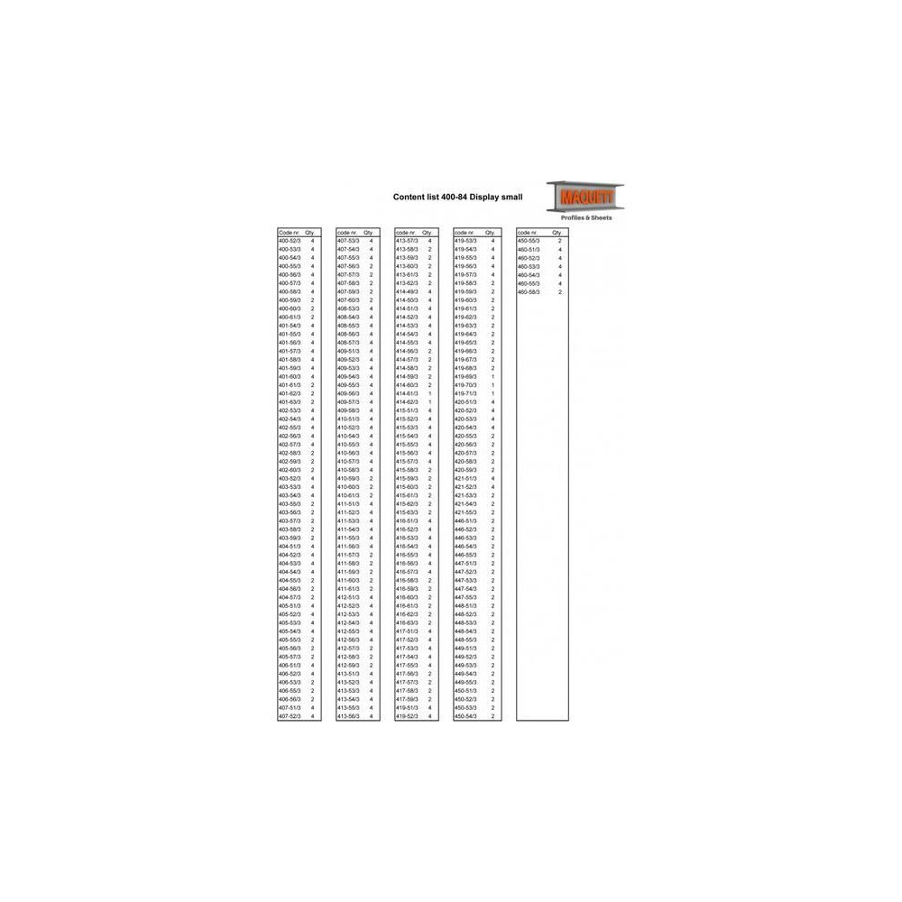 330 mm hosszúságú, 235 féle profilból álló értékesítési kijelző. Alkalmas a Raboesch modellprofilok áttekinthető megjelenítésére.