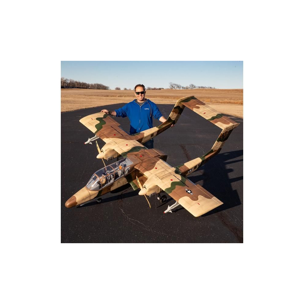 Az OV-10 Bronco katonai repülőgép óriási, kétmotoros távirányítású modellje több mint 2,7 m fesztávolsággal, teljes felületkezeléssel, pilótafülkével ellátott kabinnal és fegyvermodellekkel rendelkezik. Meghajtáshoz mind 30-35 köbcentis belső égésű motor, mind villanymotor választható. Kiváló repülési tulajdonságok és repülési realizmus.