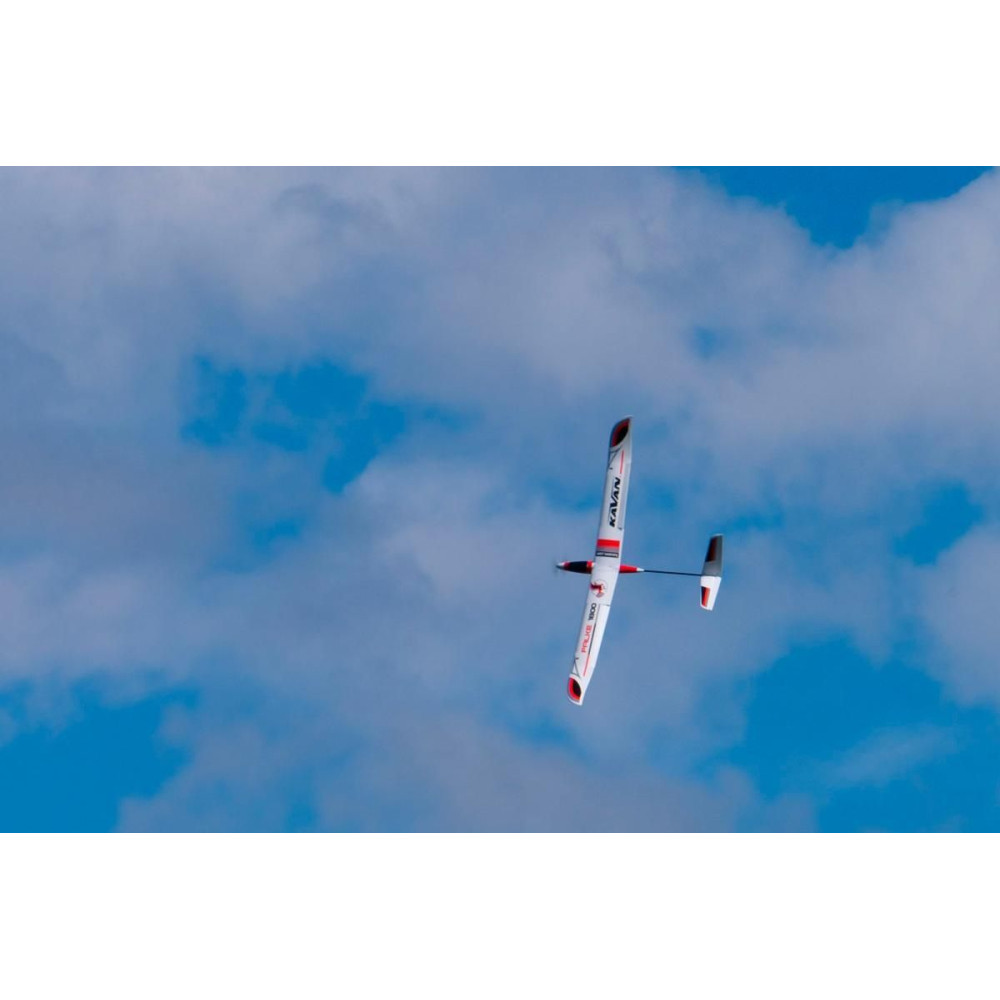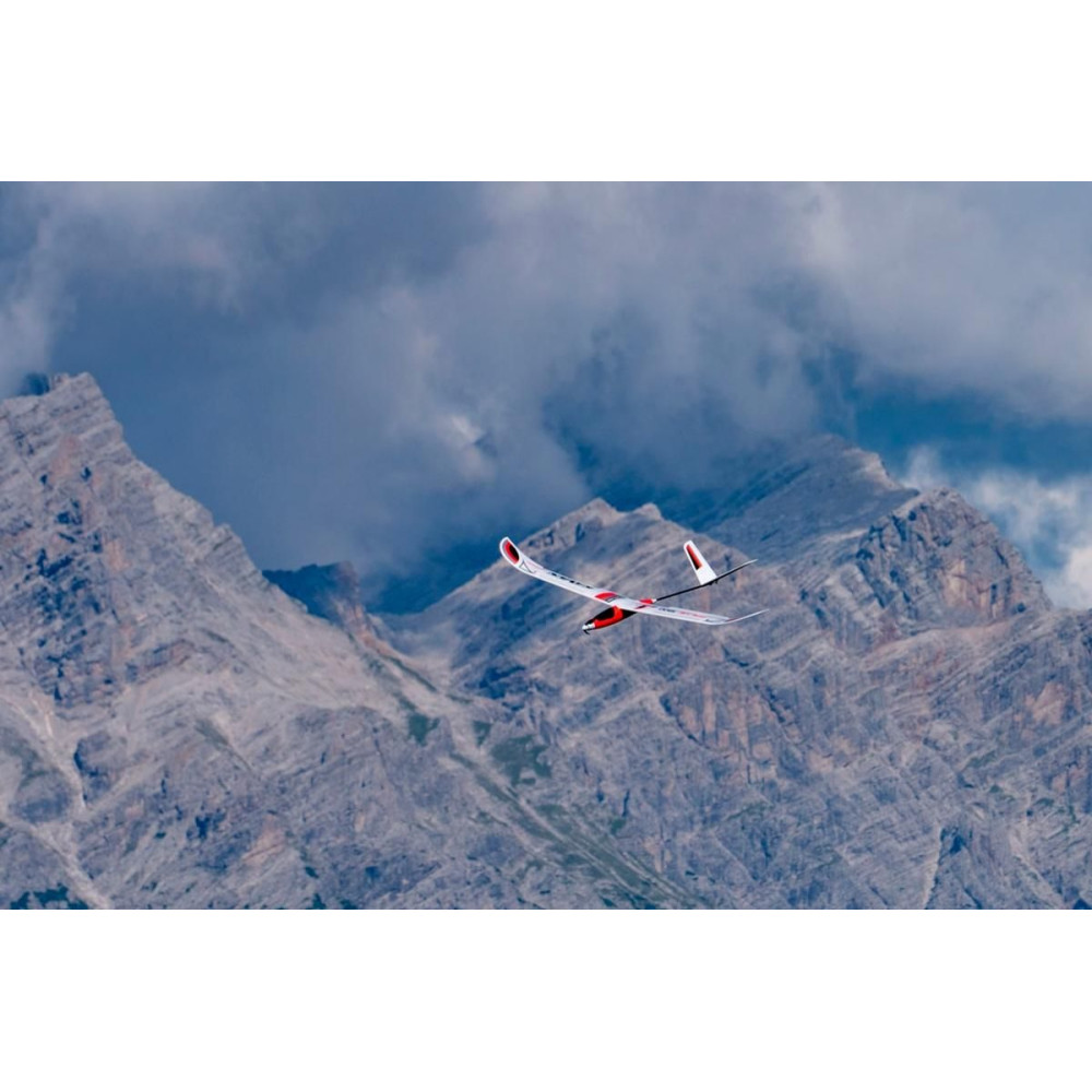 Gyakorlatilag kész, magas teljesítményű, 1800 mm fesztávolságú, szinte elpusztíthatatlan extrudált poliolefin habból (EPO) készült termikus vitorlázórepülőgép karbon farokgerendával. C2714-1450-es brushless motorral, 7x6" méretű összecsukható légcsavarral, R-20B vezérlővel és 4 mikro szervóval van felszerelve. Vezérelt szárnyacskák, kormánylapát, magassági kormány és motor fordulatszám. 3S LiPo 1200-1600 mAh (min. 20C) 1200-1600 mAh kapacitású LiPo-hoz.