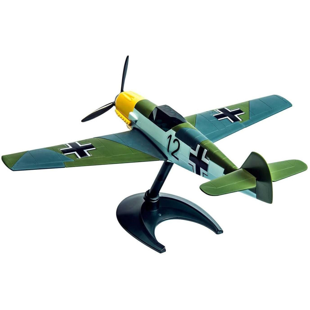 Az előre színezett alkatrészeket egyszerűen össze lehet pattintani, semmit sem kell ragasztani vagy festeni, és pillanatok alatt egy igazán látványos modell áll előtted, amelyet a mellékelt öntapadós matricákkal tetszés szerint tovább is fejleszthetsz. Természetesen egy bemutatóállványt is találsz a csomagban a modellrepülőkkel együtt, hogy megmutathasd alkotásodat!