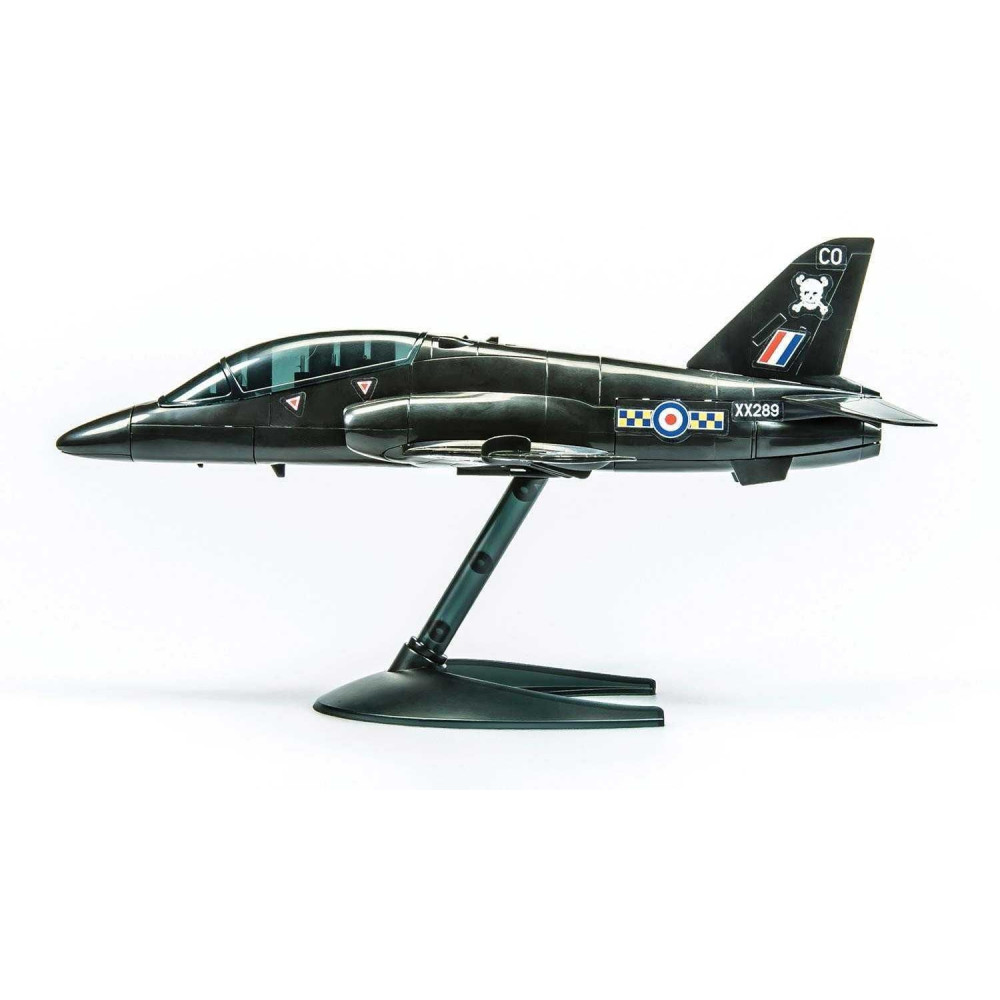 BAe Hawk a tökéletes sugárhajtású kiképzőgép! Kétségtelen, hogy a gyűjteményed megfelelő kiegészítője lesz. A modell már fényes fekete festésével is feltűnő, majd a RAF matricákkal fejezheted be. Maga a készlet összesen 26 alkatrészből áll, az állvány további 3. A modell magassága az állványon 123 mm.