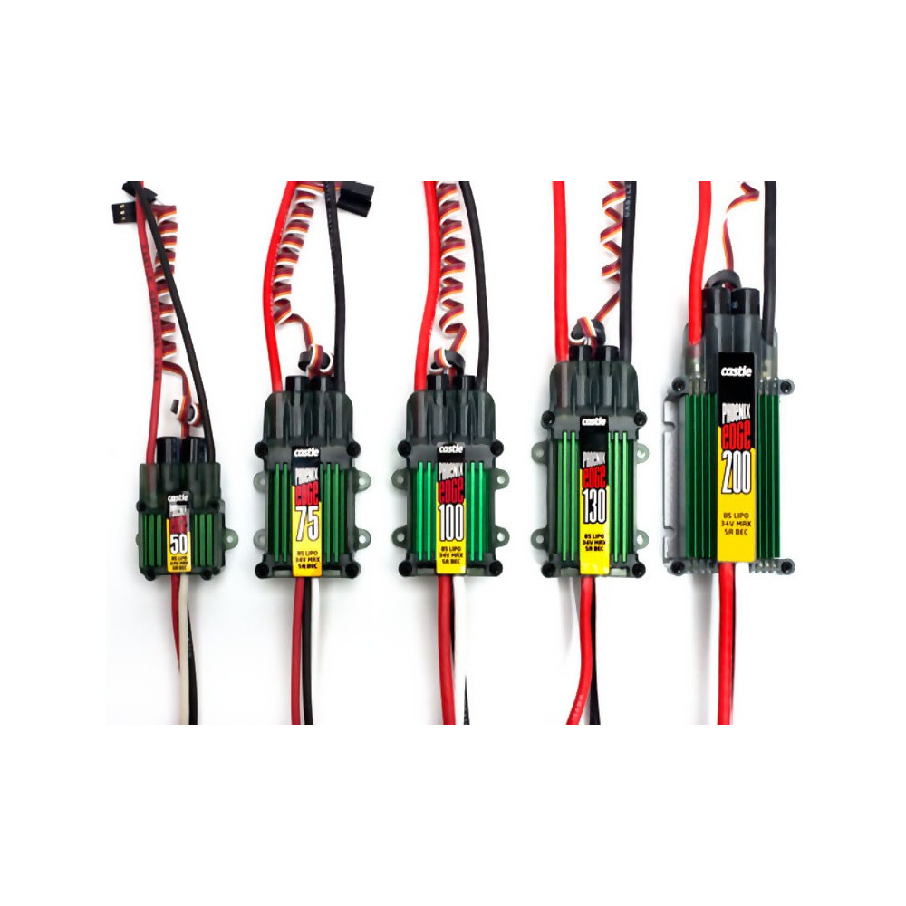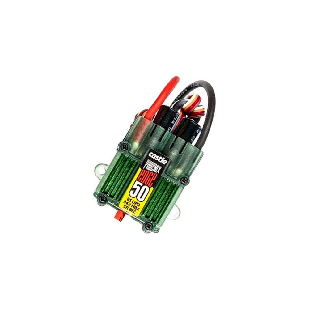 • A Castle kondenzátorcsomagot úgy tervezték, hogy kiküszöbölje a feszültségesést a tápakkumulátorban a nagy csúcsterhelések során. Az eszköz minőségi kondenzátorokból készül, nagyon alacsony ESR-rel. A Castle Capacitor Pack az 550-es sorozatú és annál nagyobb helikopterekbe vagy 1:8-1:5 arányú autókba való beszerelésre ajánlott.