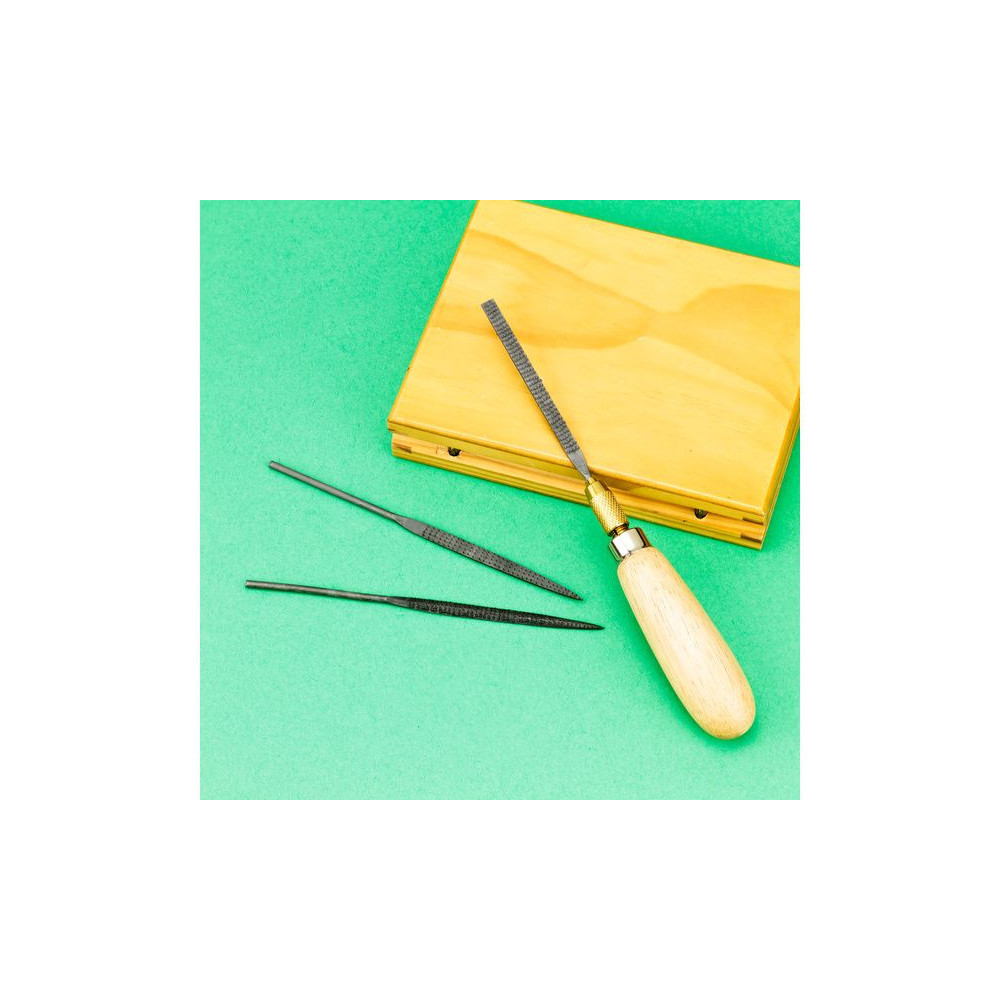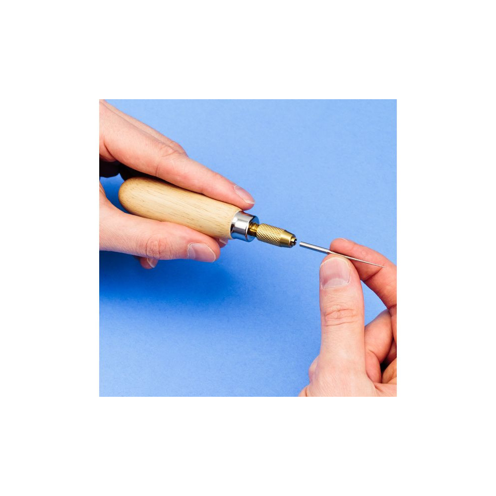 A Modelcraft univerzális fa fogantyú a tűreszelőkhöz könnyen kézre áll, és megkönnyíti a munkát. Csavaros fejű szorítófogó 3mm - 3,7mm szárátmérőjű szorítószárakhoz. Hossza 115 mm, átmérője 26 mm, súlya 36 g, fejátmérője 10 mm.