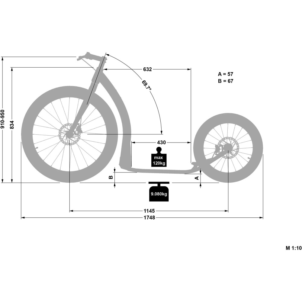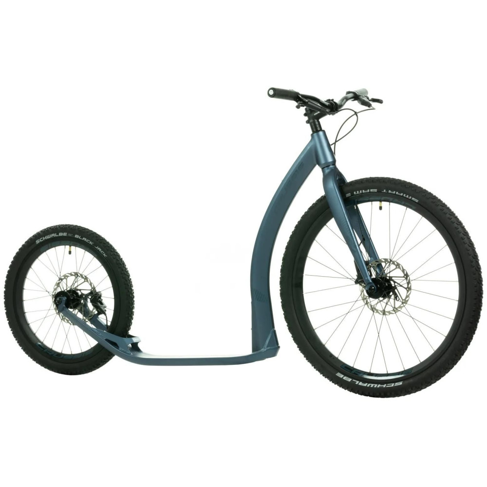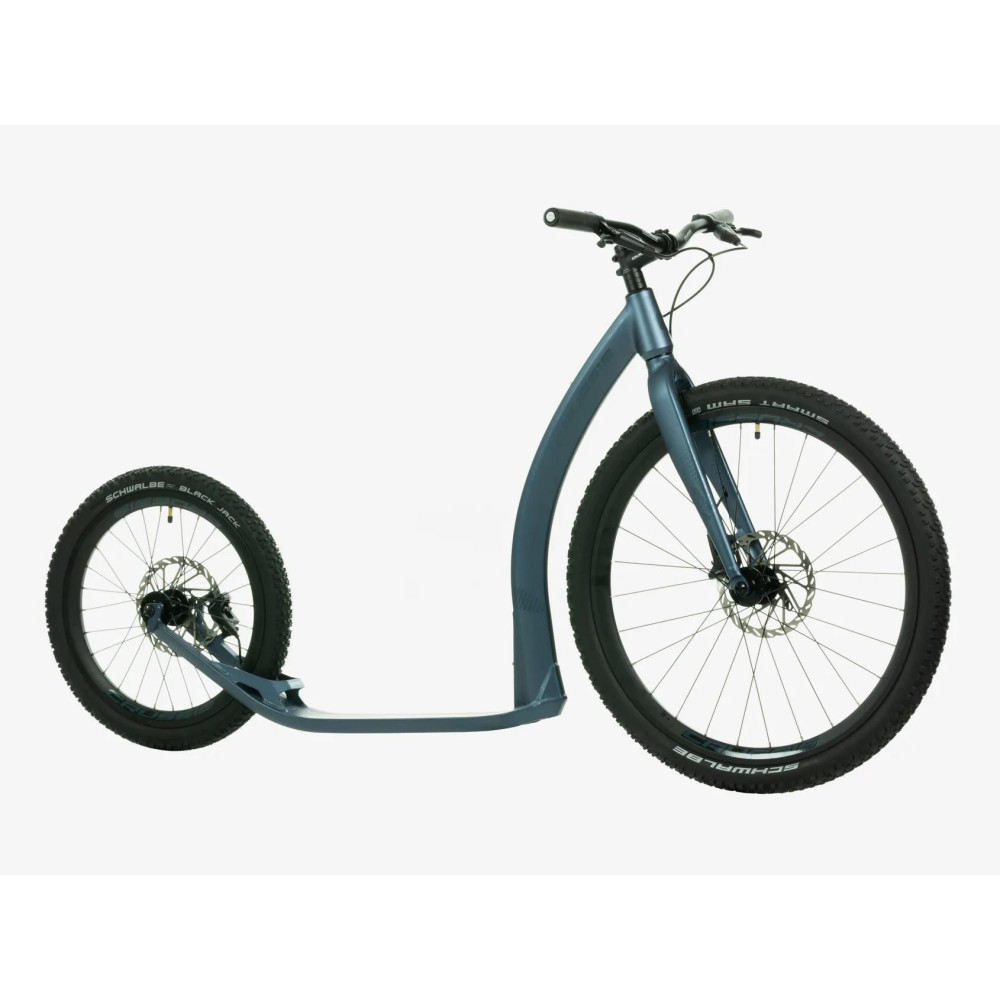 Alumínium off-road robogó CROSS Hard 6.2 a csúcs SRAM hidraulikus tárcsafékekkel, 27,5"×20" kerékátmérővel, 9,080 kg tömeggel, fix villával és SCHWALBE MTB abroncsokkal. A robogó ideális terepjáráshoz és aszfaltozott utakon való közlekedésre egyaránt.