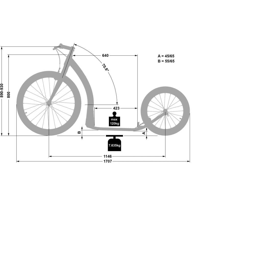 Az állítható futófelületi magasságnak köszönhetően ez egy sokoldalú robogó, amely szinte bármilyen terepen használható. A 45 mm-es hasmagasság ideális a sík felületeken való vezetéshez, de a 65 mm-es hasmagasság, amit a robogó a hasmagasság növelésével kap, szinte bármin átmegy.