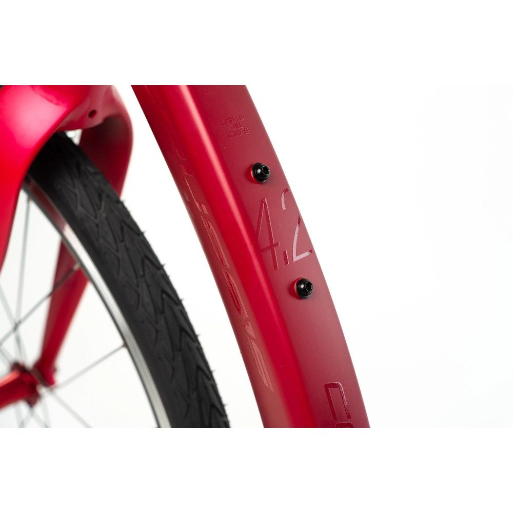Itt a CRUSSIS COBRA! A piacon kapható legkönnyebb alumínium roller, mindössze 7,635 kg-ot nyom, 26"×20"-as kerékátmérővel. Az állítható futófelület-magasságnak köszönhetően ez egy univerzális roller, amelyet szinte bármilyen terepen használhatsz. A 45 mm ideális sík felületen való vezetéshez, de a 65 mm-es hasmagasság, amit a roller a pedálozás fokozásával elér, gyakorlatilag bármit leküzd. Nincs értelme várni. A Crussis Cobra készen áll a nagyszerű utazásra. Gázt ad! MIÉRT ALUMÍNIUM ÉS NEM ACÉL VÁZ?