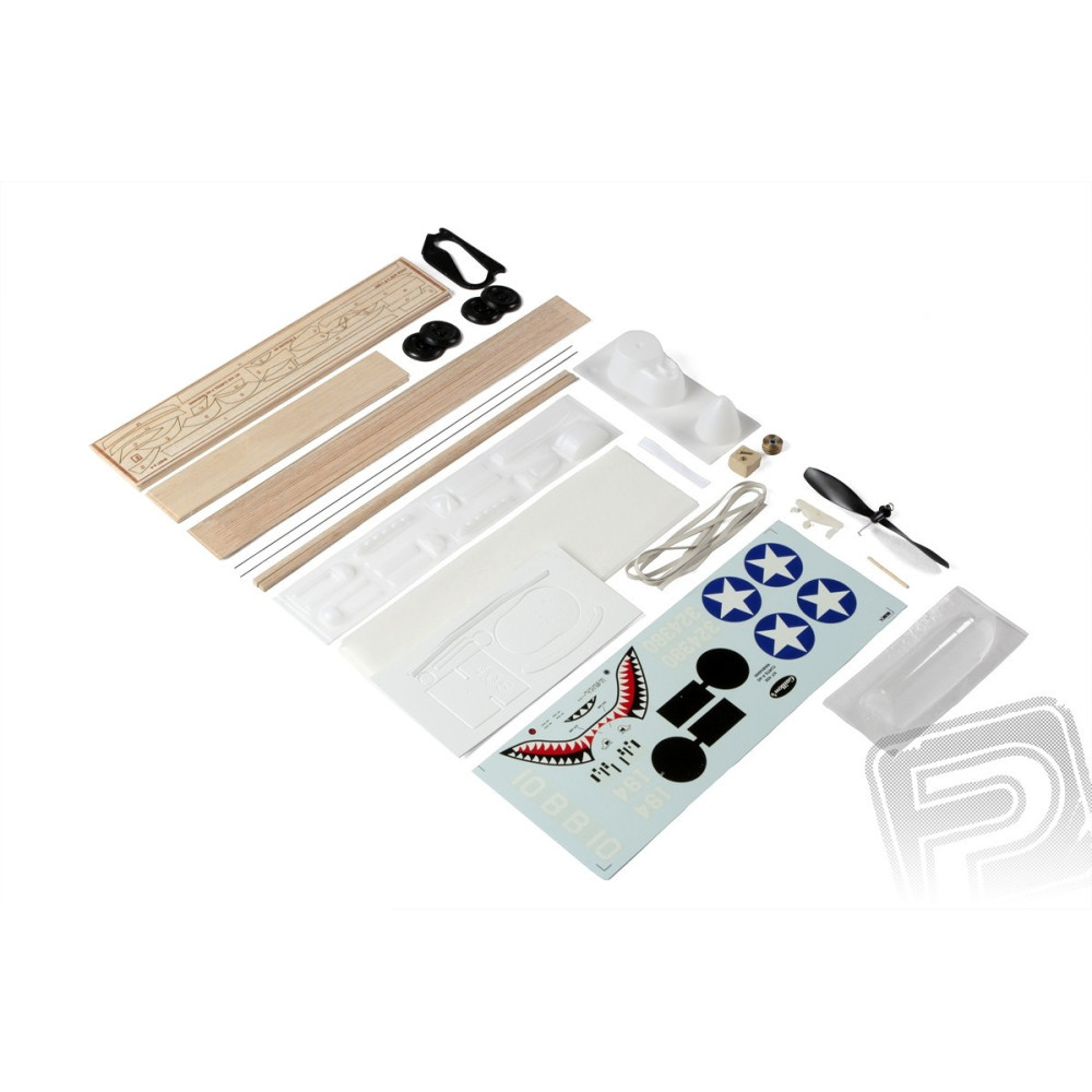 Akészlet a következőket tartalmazza: balsából előre kivágott alkatrészek, balsából készült gerendák, műanyag rétegelt lemezből készült előre kivágott alkatrészek, vákuumformázott makett alkatrészek (motorborítás, pilótafülke...), műanyag légcsavar tengellyel és fejjel, gumicsomag (5x1mm gumi), műanyag kerekek, acélzsinór a futóműhöz és egyéb apró alkatrészekhez, műanyag kerekek, bevonópapír, ív nedves matricák, építési terv.
