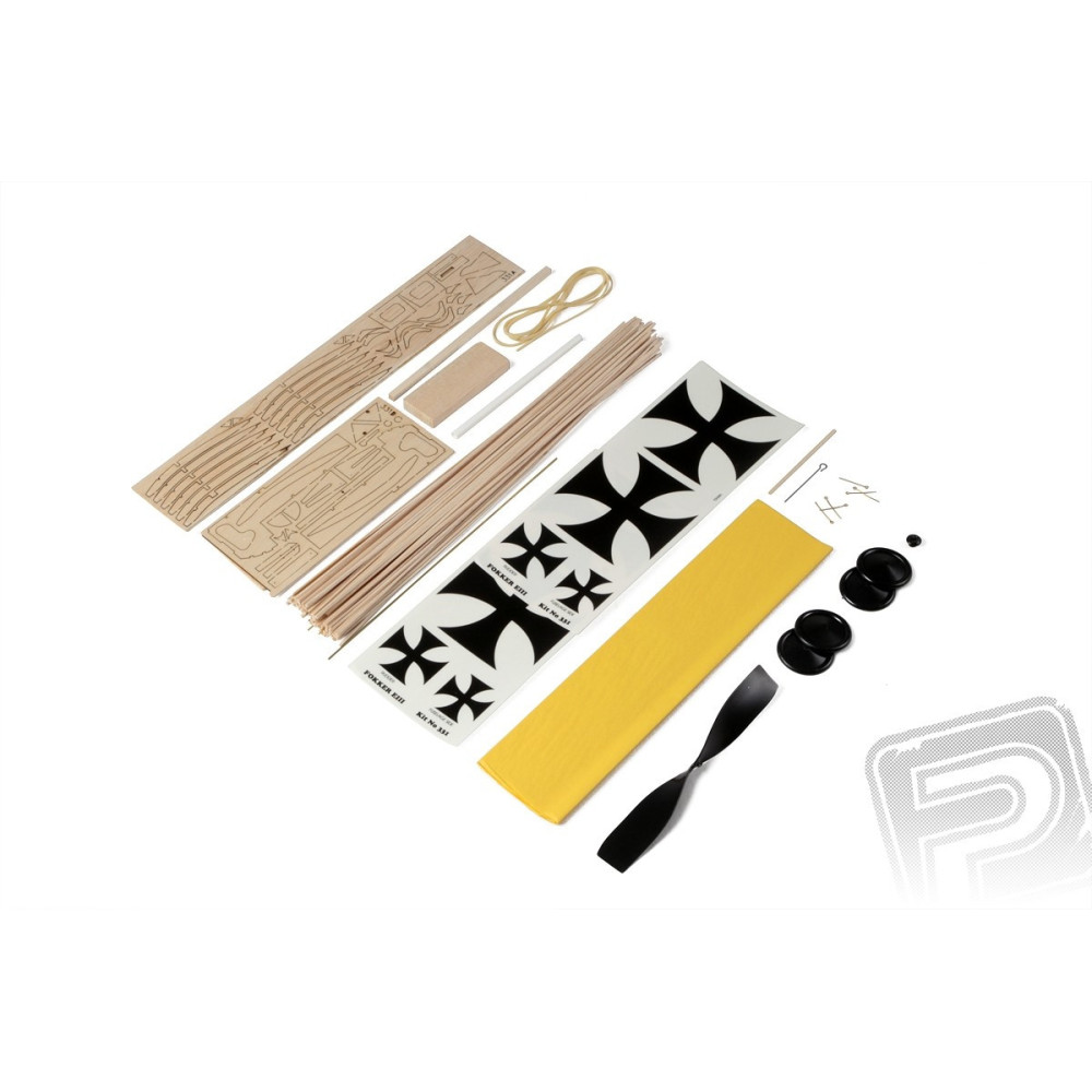 Egy félméretű német vadászrepülőgép szabadon repülő készlete, amelyet gumiszalagos meghajtásra terveztek. A modell egyszerű, klasszikus, teljesen balsából készült, lézervágott fa alkatrészekkel, vákuumformázott műanyag makett kiegészítőkkel és fröccsöntött műanyag alkatrészekkel. A törzs hagyományos minimakettás technológiával épül - először balsacsíkokból rakod össze az oldalfalakat, amelyeket félsínekkel és keresztlécekkel illesztesz össze, hogy egy rácsos vázat alkossanak. Az esetleges lekerekített formákat több vékonyabb szálhúzó ragasztásával kapjuk. A szárnyak hagyományos építésűek gerendákból és bordákból, a farokfelületek balsacsíkokból és lézervágott alkatrészekből.