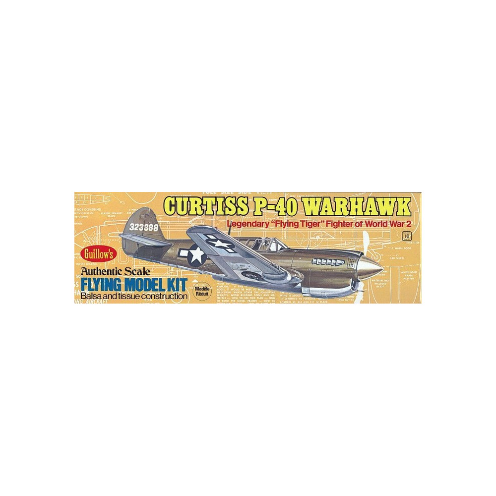 II. Világháborús Amerikai vadászgép minimakett, gumihajtással. Előrevágott részek, légcsavarok, gumi köteg és bevonó anyag. Fesztáv 419 mm. Alkalmas az elektromos RC konverzióra.