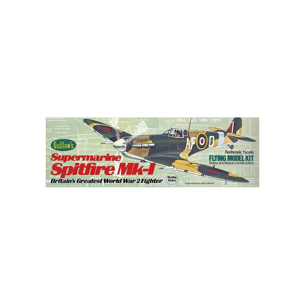 II. világháborús Brit együléses vadászrepülőgép mini-makett gumihajtással. Kivágott alkatrészek, légcsavarok, gumiköteg és bevonó anyag. Fesztáv 419 mm.