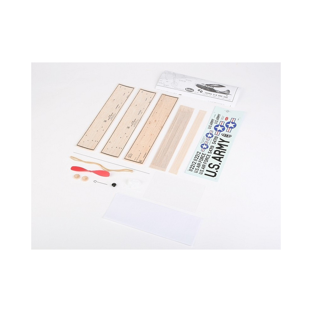 a készlet tartalmazza: balsából előre kivágott alkatrészek, balsából készült gerendák, vákuum-formázott alkatrészek (motorburkolat), átlátszó fólia a pilótafülke "üvegezéséhez", műanyag légcsavar tengellyel és fejjel, gumicsomag, kivájt balsakerekek, acélzsinór a futóműhöz és egyéb apró alkatrészekhez, bevonópapír, ív nedves matricák, építési terv.