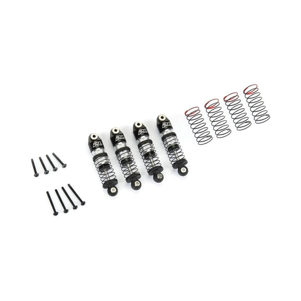 Pro-Line lengéscsillapító 1:24 Big Bore Scaler (4db) - CNC megmunkált alumínium lengéscsillapító készlet SCX24 RC autó modellekhez, állítható rugó előfeszítésű anyával. Dupla O-gyűrűkkel. Polírozott acél lengéscsillapító tengely. Előre összeszerelve, csak olajat kell hozzáadni! Tartalmaz 4 darab opcionális merevebb rugóból álló készletet.