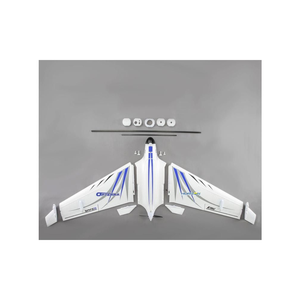 RC modell Opterra távirányítós szárny közel 2 m-es fesztávolsággal a szabadidős repüléshez, vagy használhatja FPV repüléshez vagy videofelvételhez egy kamera és adó telepítése után. A modell csúcsa levehető, alatta minden készen áll FPV kamerák vagy klasszikus Go-Pro kamerák (és hasonlók) felszerelésére. Egy Spektrum AR631 vevő AS3X stabilizátorral és SAFE Select aktiválással van felszerelve.
