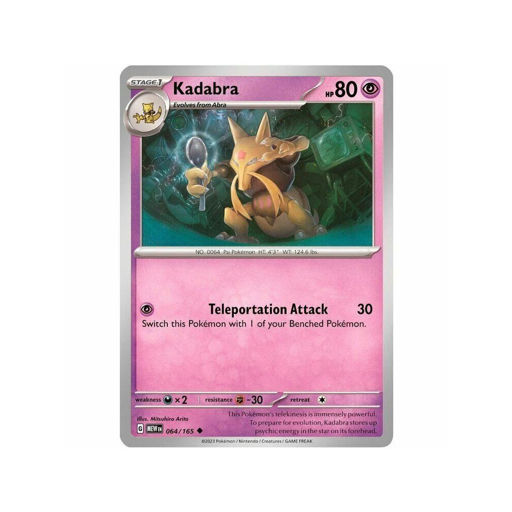 Táto mocná zberateľská 151 Alakazam ex Collection obsahuje jedného z najikonickejších psychických pokémonov vôbec, Alakazama! V balení sa nachádza špeciálna promo karta Alakazam ex, dve promo karty jeho predvývojov (Abra a Kadabra) , ďalej sú tu 4 Pokémon TCG Boostre (balíčky) edície 151 a samozrejme kód pre Pokémon TCG Live.
