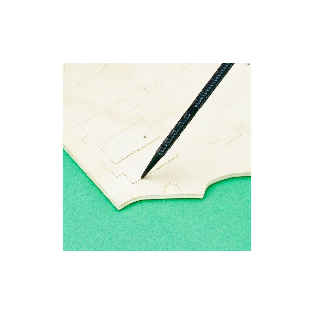A Modelcraft 175 mm hosszú, kétoldalas acél vésője a pontos fogás érdekében bordázott fogantyúval rendelkezik, egyik oldalán precízen csiszolt hegye, másik oldalán pedig 15 mm széles, ferde pengéje van. A hegy a fa, fém, laminált és műanyag vésésére és jelölésére, az ék alakú penge pedig a felületek kaparására szolgál. Súlya 31 g.