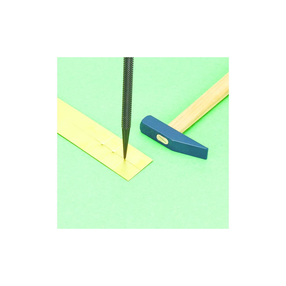 A Modelcraft acél marker vagy más néven lyukasztó szerszám 100 mm hosszú, a pontos tartás érdekében görgetett fogantyúval és precízen csiszolt hegyével rendelkezik. Ideális szerszám a lyukak pontos megjelöléséhez a fába, fémbe, laminált anyagba, műanyagba stb. történő lyukfúráshoz. Súlya 20g, átmérője 7mm.