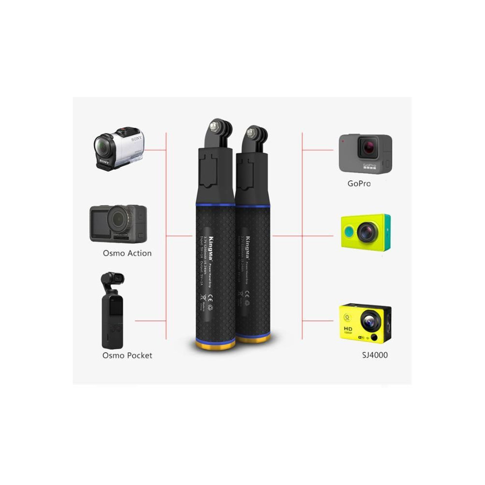 Hosszúság: 205mm Akkumulátor kapacitás: 2db 18650 3.7V 2600mAh Bemenet: 5V 1A Kimenet: Micro USB 5V 1A Súly: 265g 14cm Micro USB töltőkábellel és 14cm USB Type-C töltőkábellel Felvételi idő: 180 perc Gopro Hero 7/6 4K; 200 perc Gopro Hero 5 4K-ban.