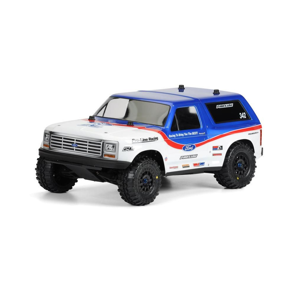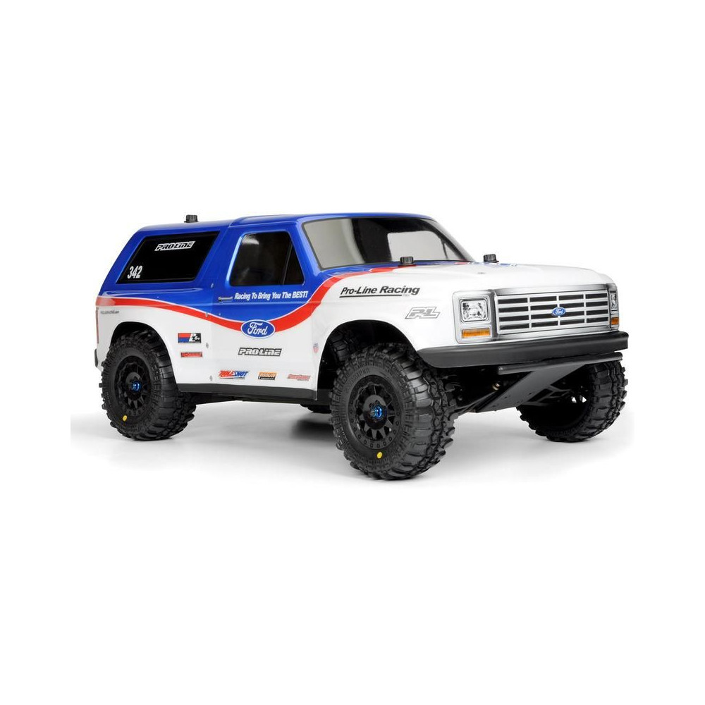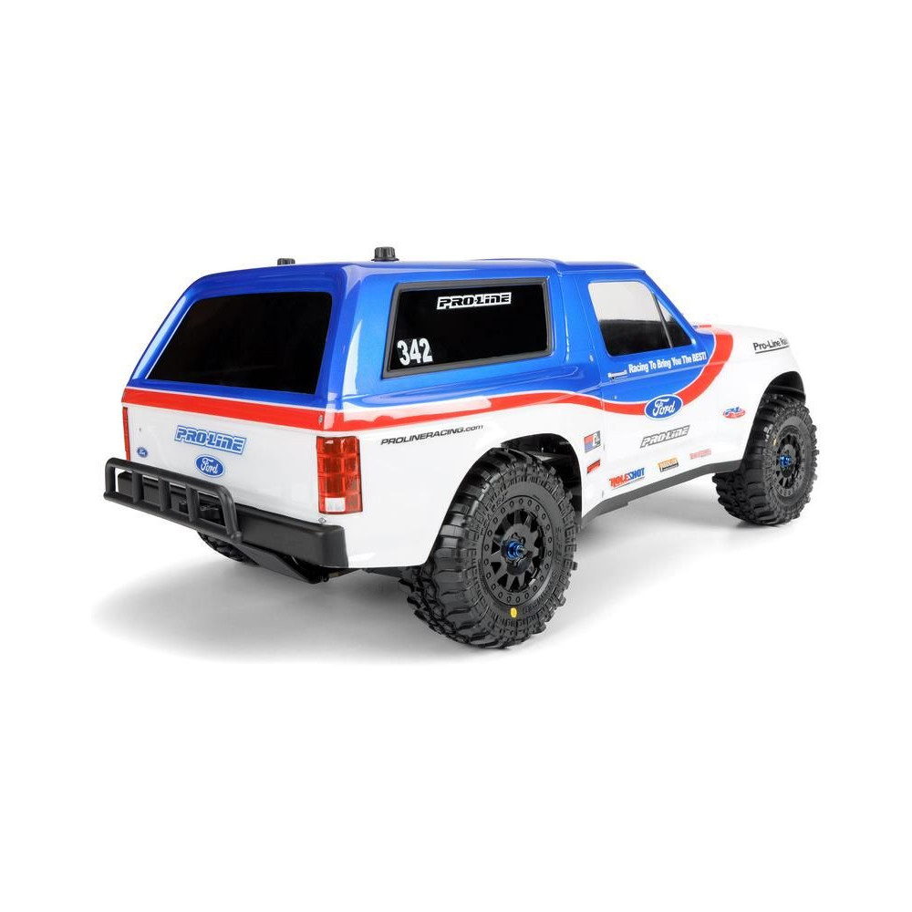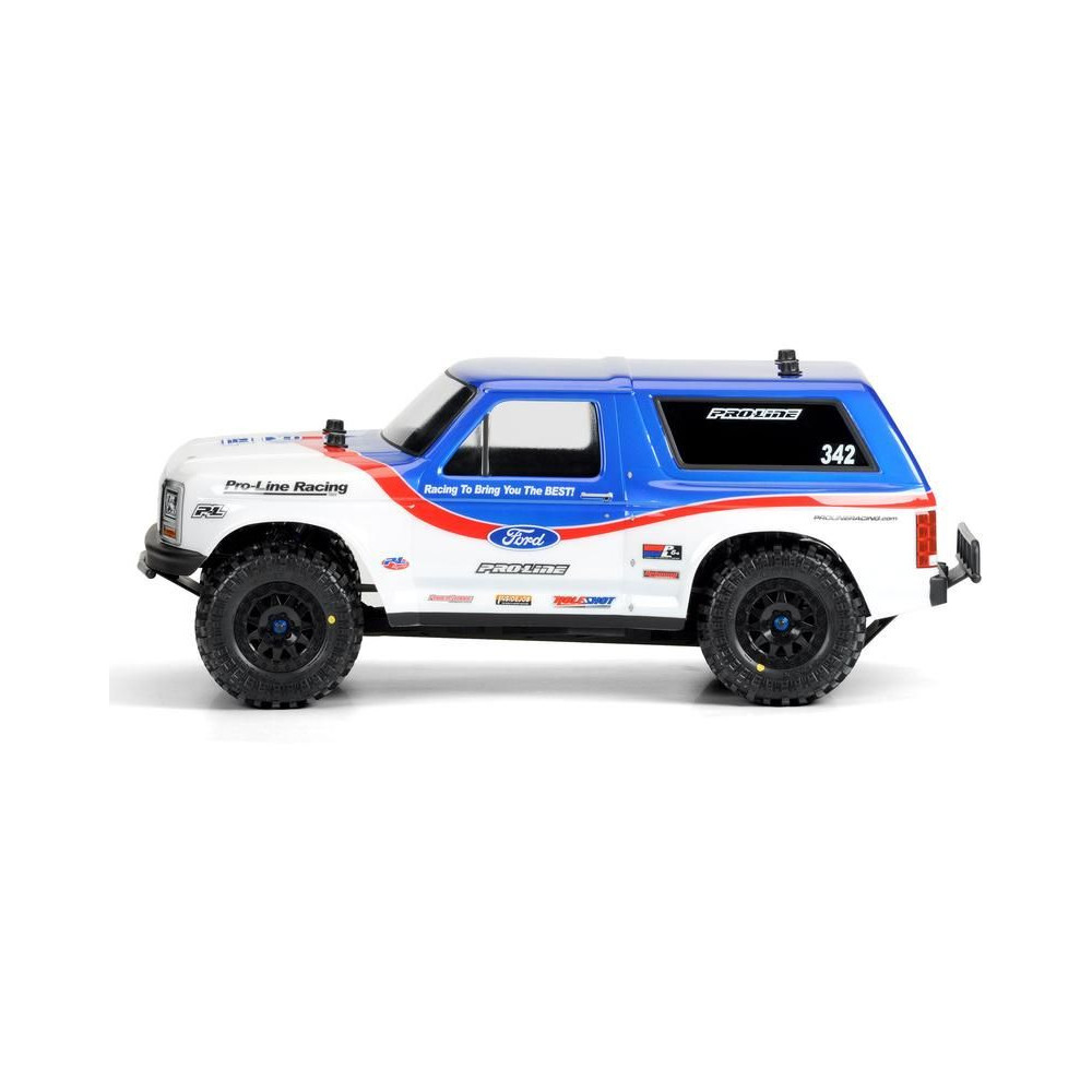 Pro-Line karosszéria a Short Course RC modellautókhoz, a Ford® Bronco-hoz. A Pro-Line karosszéria egy 1981-es modellt ábrázol 330 mm-es tengelytávval, és az első hűtőrácsot, fényszórókat, karosszéria díszléceket és számos részletet tartalmaz. A matrica ív tartalmazza az első hűtőrácsot, az első, hátsó és oldalsó lámpákat, a kilincseket, a logókat és a feliratokat. A karosszéria átlátszó, és tartalmazza az ablakmaszkot. Miután lefújtad, helyezd fel a matricákat, és már kész is vagy.