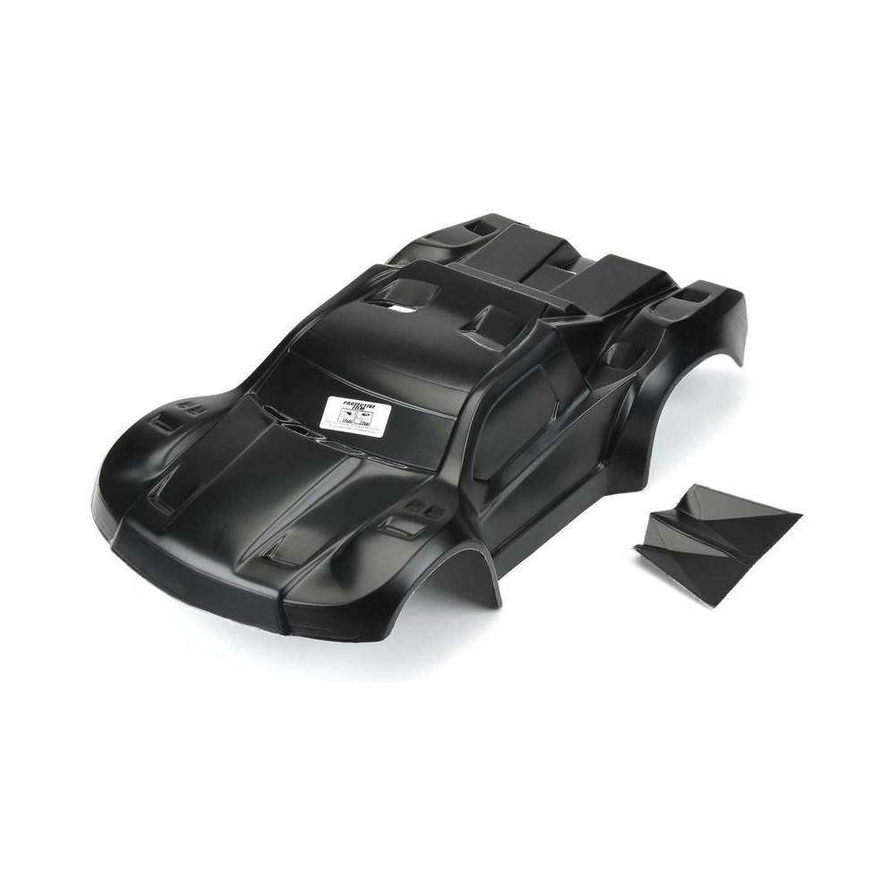 Pro-Line fekete Flo-Tek Fusion Black karosszéria 1:10 méretarányú RC Short Course autókhoz, tengelytáv 323mm, hossz 546mm, szélesség 235mm. Tartós lexánból készült.