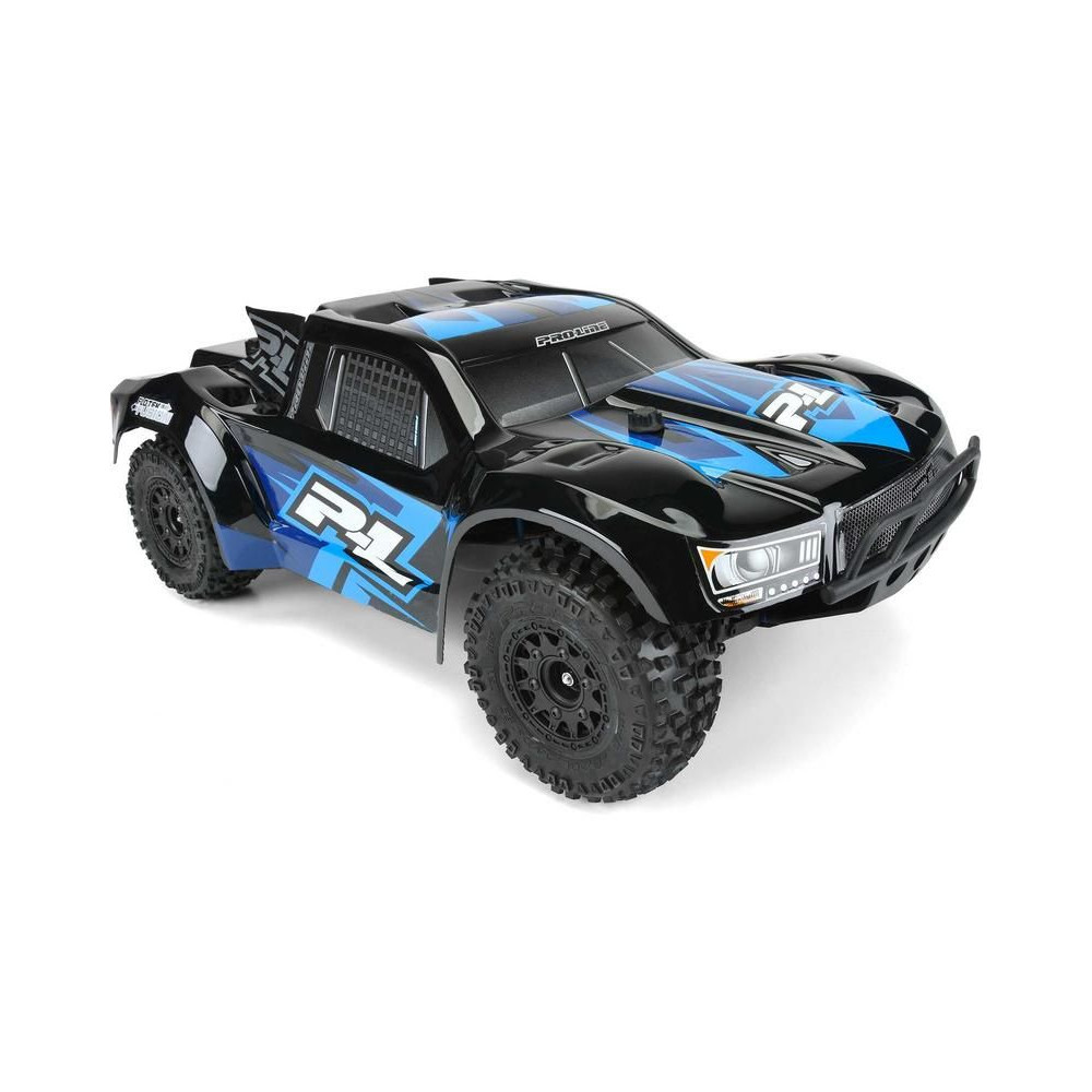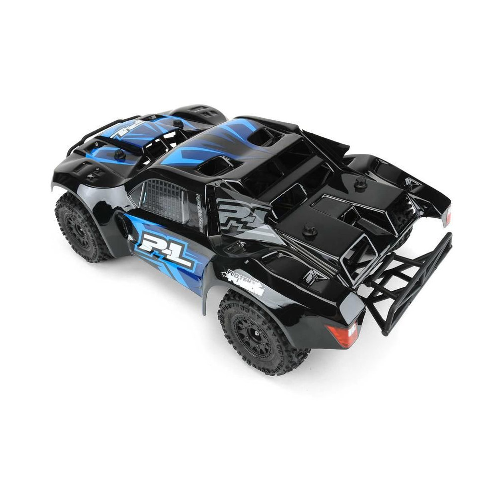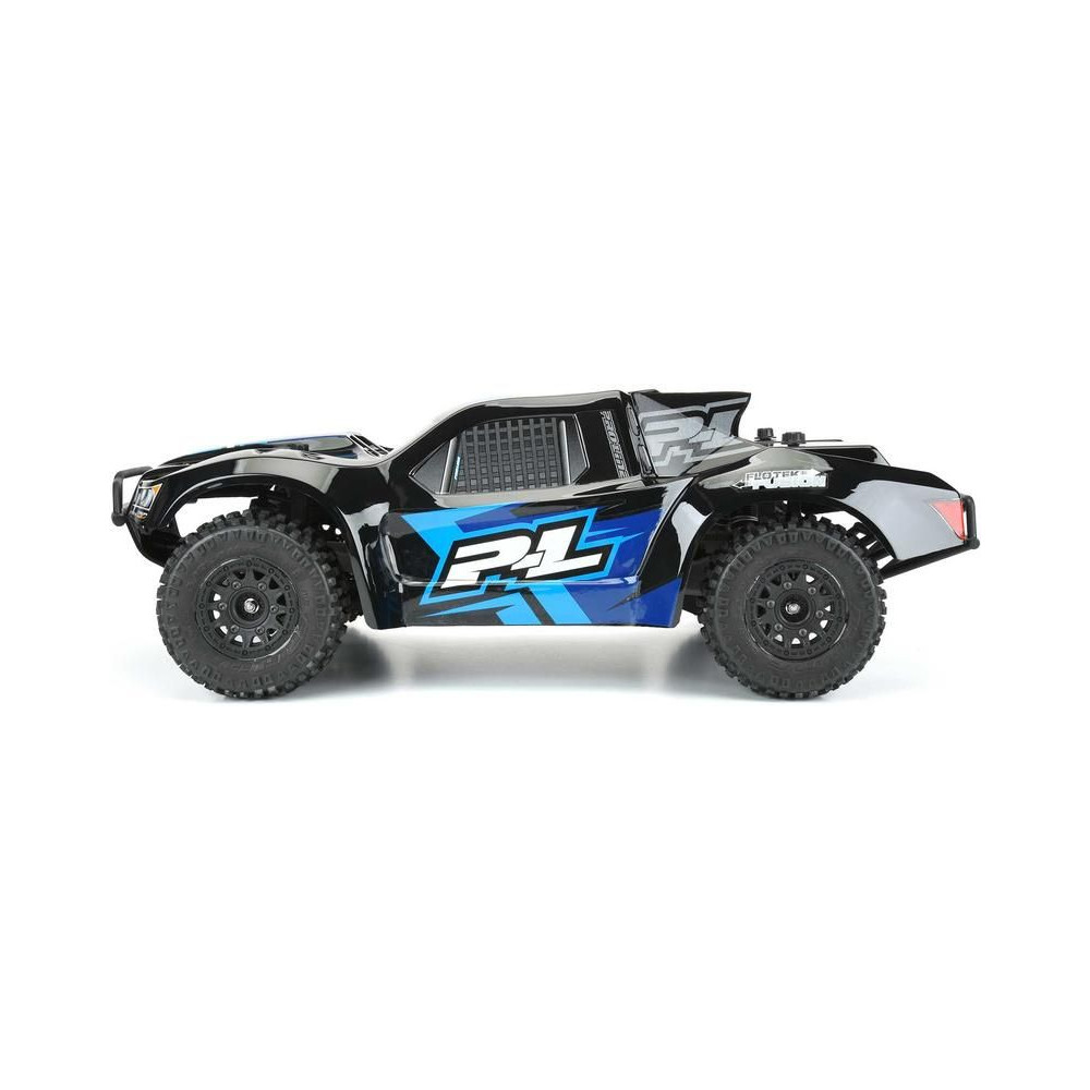 Kész Flo-Tek Fusion Tough-Color Black SC karosszéria. A Pro-Line fekete polikarbonát anyagból készült, és részletes matricákkal van ellátva. Csak szerelje fel a matricákat és készítse el a lyukakat az oszlopok számára, és máris indulhat a motorozás. A Fusion matricák előre kivágottak és Pro-Line kék sebességvonalakkal vannak ellátva, a valósághű ablakmatricák szintén a csomag részét képezik!