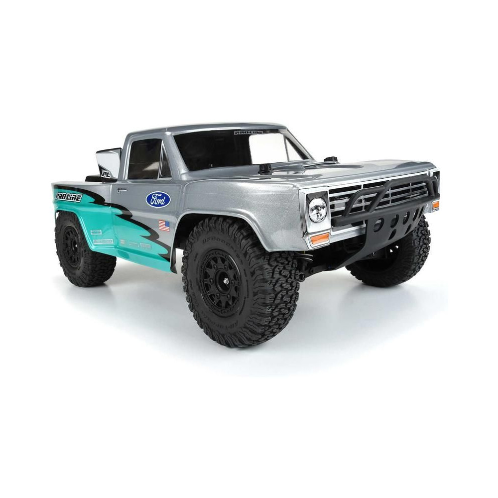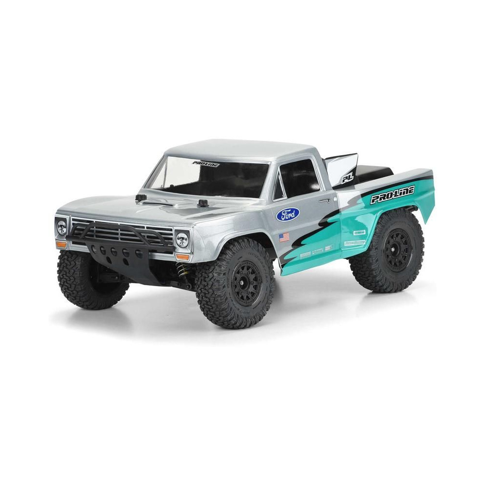 A licencelt 1967-es Ford F-100 karosszéria kifejezetten Short Course RC autómodellekhez készült. Az 1967-es Ford® karosszéria az F-100 ikonikus lapos hűtőrácsával és széles sárvédőszoknyáival rendelkezik, amelyek a teljes méretű versenygépeken található agresszív üvegszálas dudorokat képviselik. A Pro-Line minden részletet beépített a karosszéria kialakításába, hogy egy rendkívül részletes replika készüljön. Készítsd fel a Short Course Truckodat a pályára az új 1967-es Ford F-100 karosszériával!