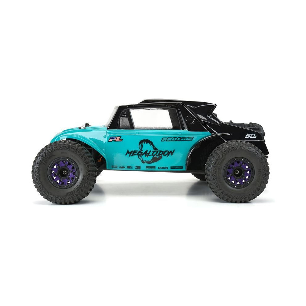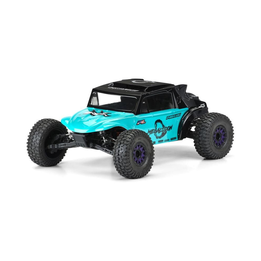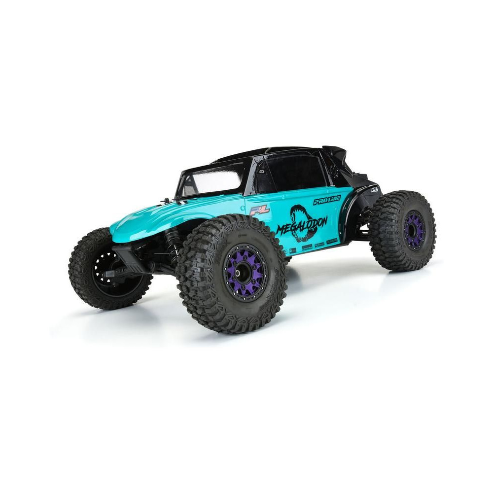 Pro-Line karosszéria tiszta Megalodon Desert Buggy, 1:10 méretarányú RC modellekhez, rövidpályás autókhoz, tengelytáv 335mm, hossz 483mm, szélesség 191mm. Tartós lexánból készült.