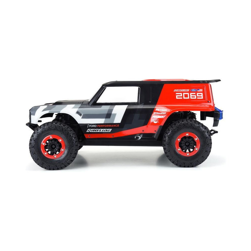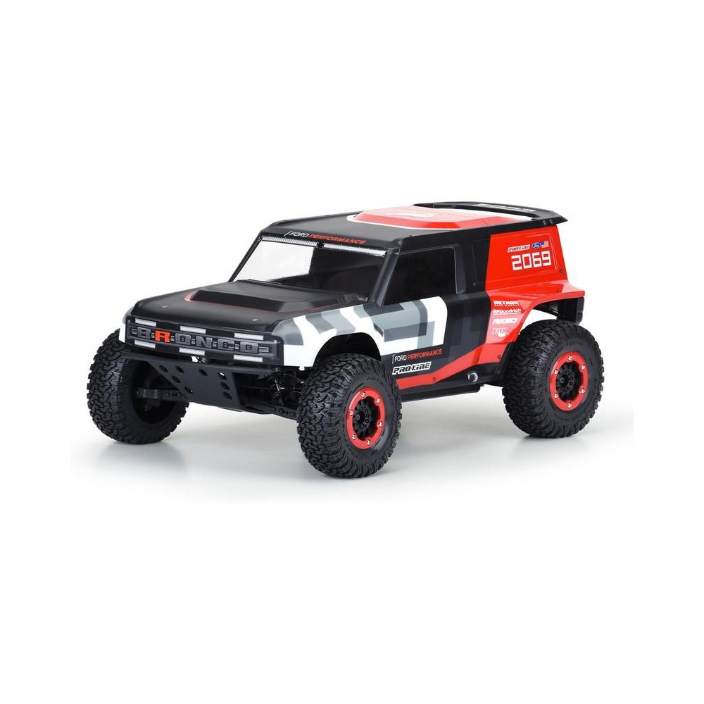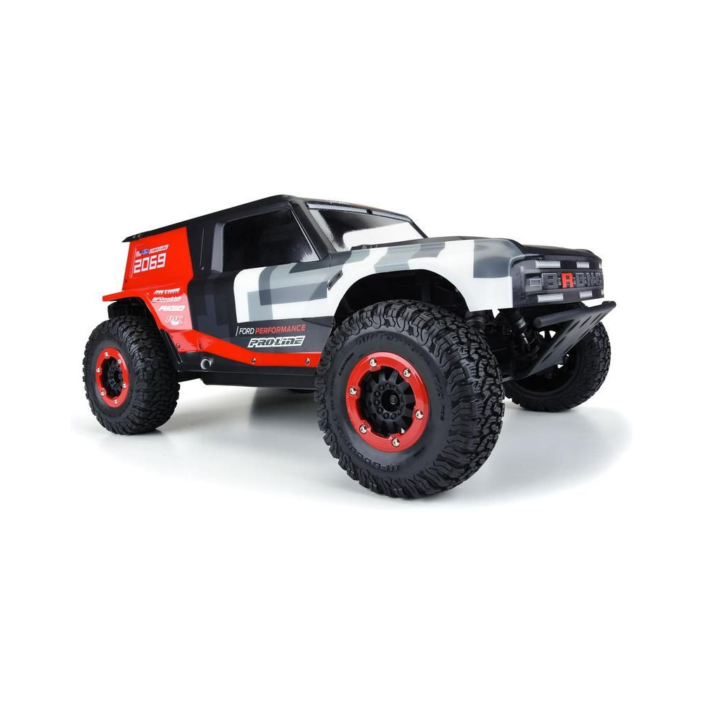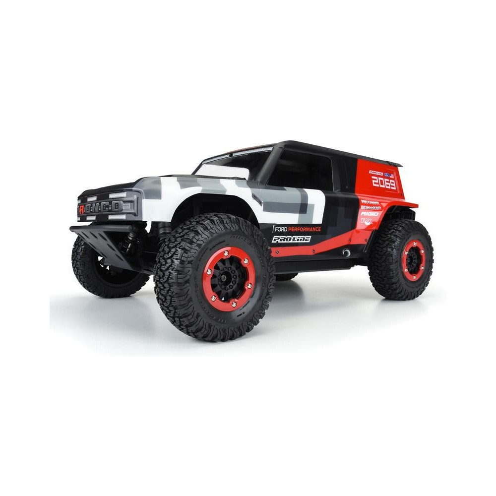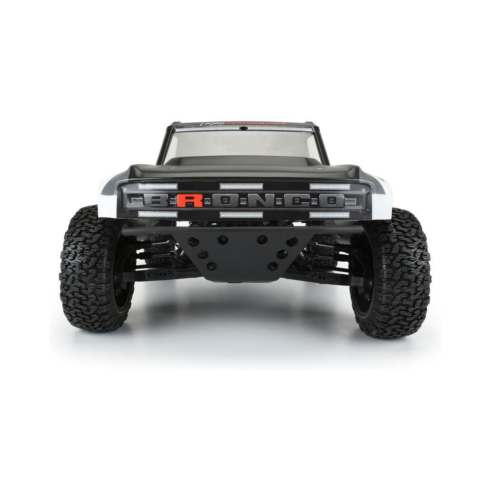 A Pro-Line a legújabb Ford Bronco R versenyautó karosszériát kínálja 1:10 méretarányú RC Short Course modelljéhez. A Bronco R karosszéria az új 2021-es Bronco dizájnelemeit veszi át, de nagy sárvédőkkel rendelkezik, amelyek lehetővé teszik a valódi terepgumik használatát. A karosszéria átlátszó, így saját színkreációkkal testre szabhatja a megjelenést. A készlet tartalmaz egy kiegészítő hátsó spoilert és egy kiegészítő hátsó lökhárítót hátsó lámpákkal, akárcsak a teljes méretű teherautó. A Bronco R karosszériakészlet teljesen átalakítja SC teherautódat egy igazi terepjáró versenyzővé. Szerezd meg a saját Pro-Line Bronco R karosszériás versenykamionodat átlátszó karosszériával még ma!