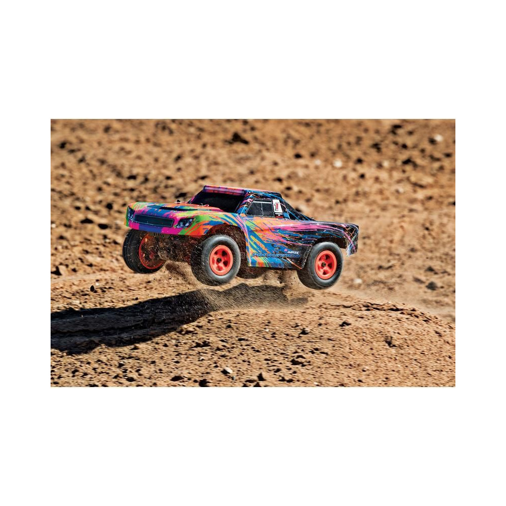 A LaTrax Desert Prerunner egy megfizethető terepjáró RC modellautó 1:18 méretarányban. Kiváló minőségű Traxxas, 4WD, 2,4 GHz-es RC készlet, vízálló vezérlő és szervokormány, 370-es sorozatú DC motorhajtás, 30 km/h sebességig. 7,2V 1200mAh NiMH akkumulátor.
