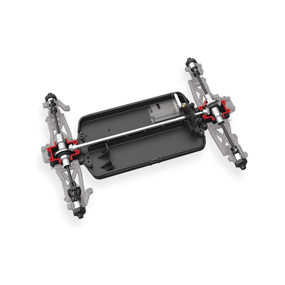 Az igazi autókhoz hasonlóan ez az RC modell is első differenciálművet használ, amely elosztja a nyomatékot a kerekek között, és kanyarodáskor eltérő sebességet tesz lehetővé az első kerekeken. Ennek köszönhetően az autó egyenletes vezetést biztosít, és kiváló menettulajdonságokkal rendelkezik. A tökéletes erőelosztás érdekében a modell hátsó differenciálművel is fel van szerelve. A differenciálművek fém fogaskerekekkel vannak felszerelve a tartósság érdekében .