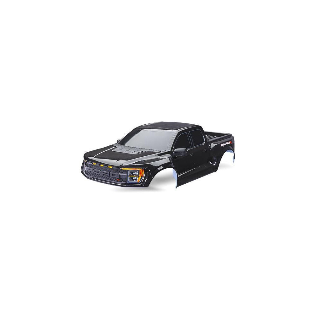 Karosszéria Traxxas Ford F-150 Raptor R fekete, komplett. Beleértve a hűtőrácsot, a hátsó csomagtartó panelt, az oldalsó tükröket, az ablakmaszkot és a matrica lapot. A Traxxas TRA10124 és TRA10125 klipsz nélküli rögzítő rendszerekre történő felszereléshez tervezték. Nem a Slash modellekhez készült.
