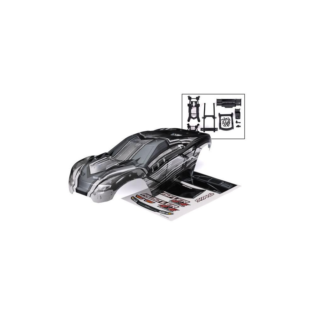 Traxxas Rustler 4X4 ProGraphix karosszéria - átlátszó karosszéria alkalmazott grafikával, festést igényel. Tartalmaz egy klipszes tartókonzolt a rögzítéshez.