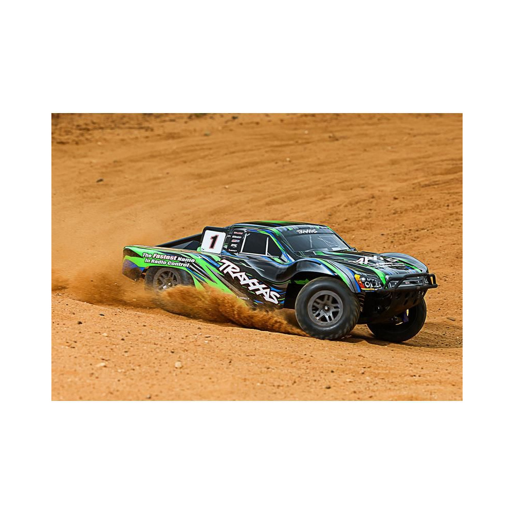 RC modell Traxxas Slash 1:10 BL-2S 4WD RTR összkerékhajtással. Tartalmaz BL-2S kefe nélküli BL-2S motort BL-2S vezérlővel, Extreme Heavy Duty tartósságú alkatrészeket és cső nélküli karosszériát. TQ 2,4 GHz-es RC készlet. Sebesség akár 56 km/h.