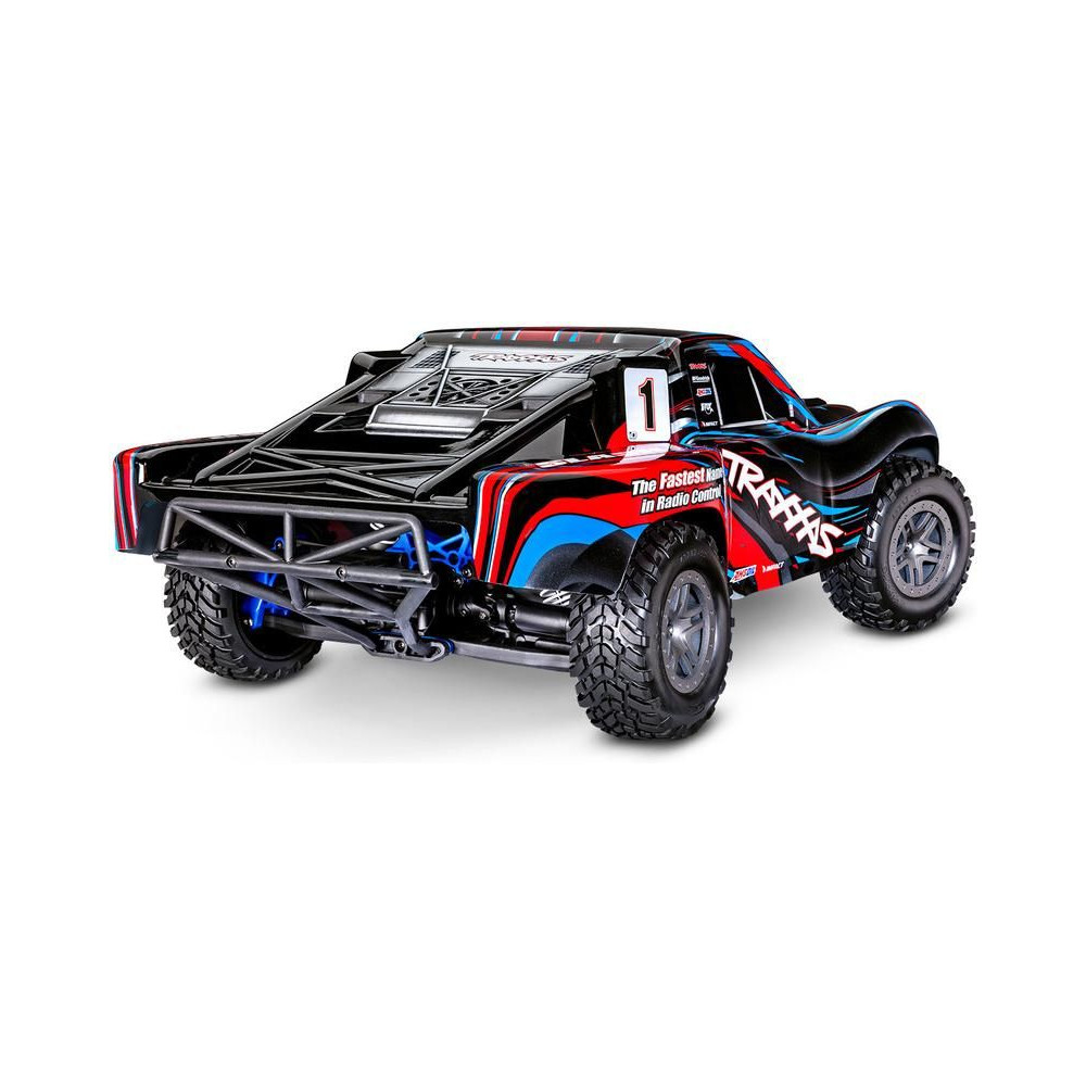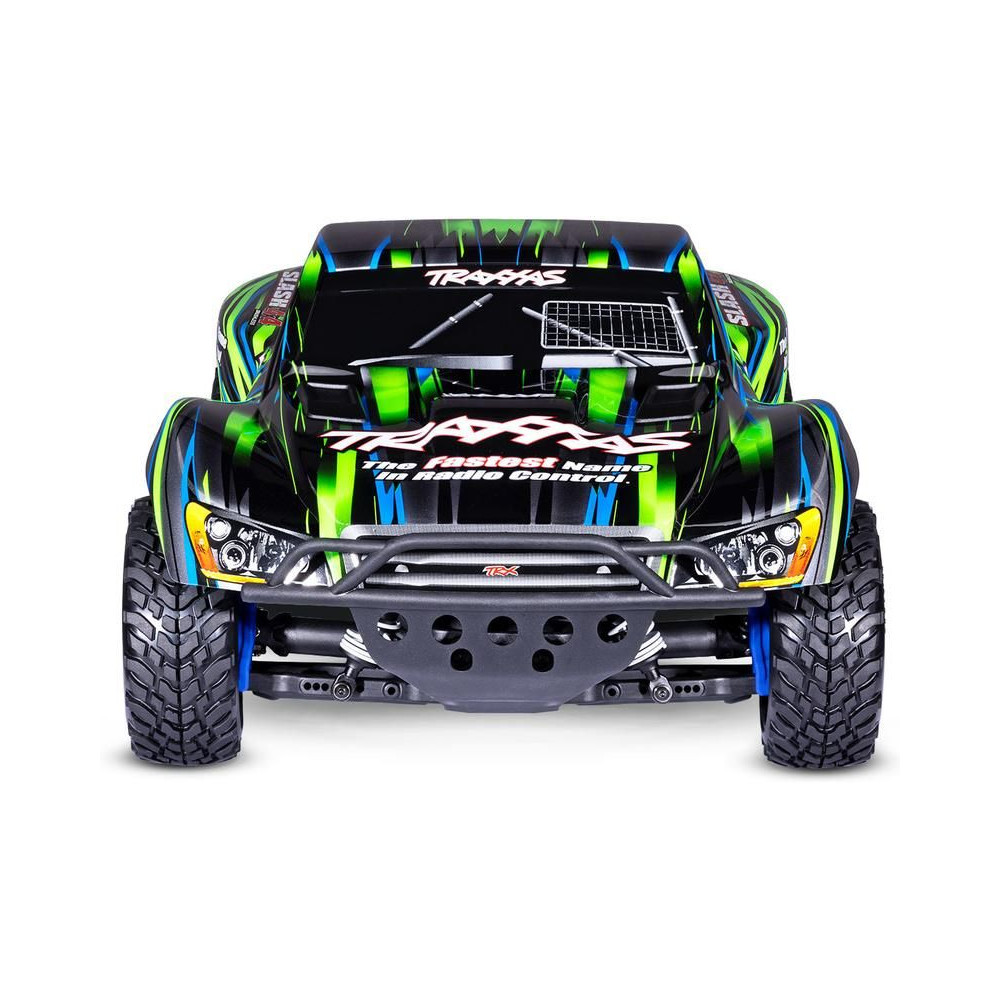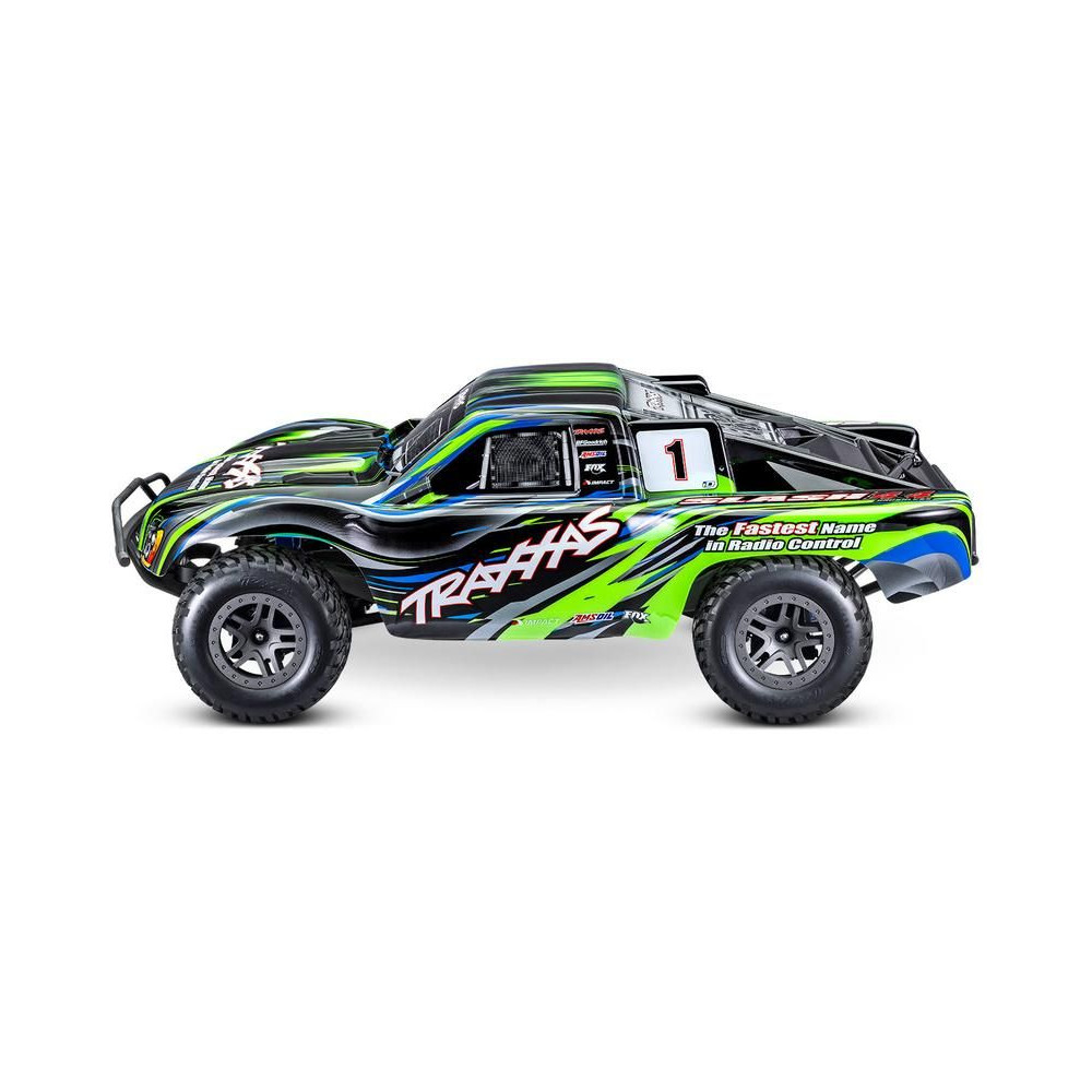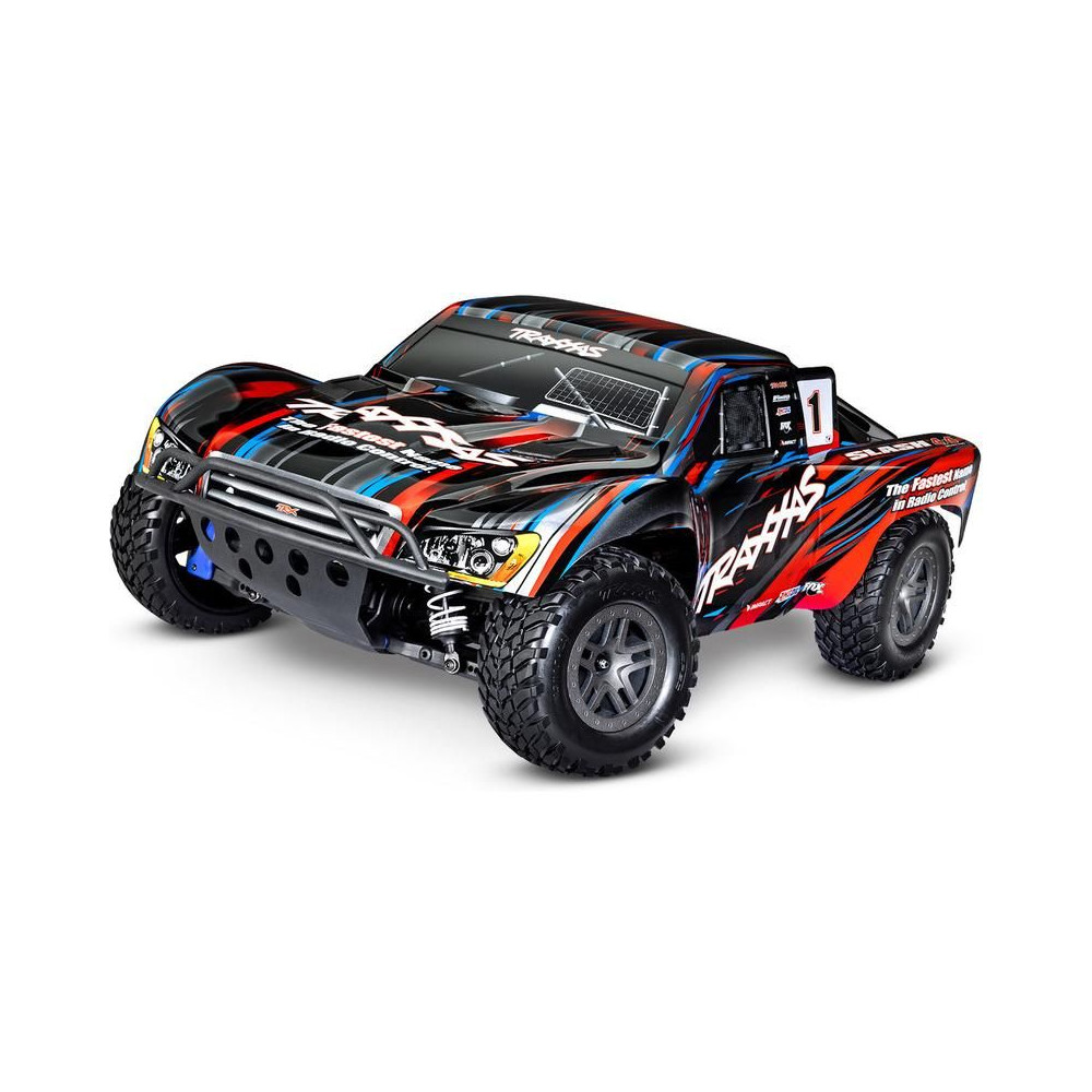 RC modell Traxxas Slash 1:10 BL-2S 4WD RTR összkerékhajtással. Tartalmaz BL-2S kefe nélküli BL-2S motort BL-2S vezérlővel, Extreme Heavy Duty tartósságú alkatrészeket és cső nélküli karosszériát. TQ 2,4 GHz-es RC készlet. Sebesség akár 56 km/h.