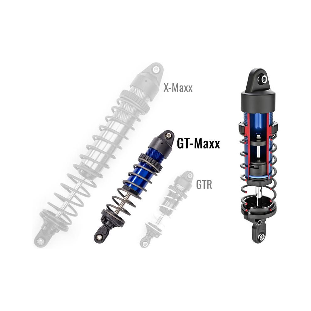 Négy extra nagyméretű GT-Maxx lengéscsillapító hatékonyan nyeli el a legkeményebb ütéseket is. Az olajjal töltött alumínium lengéscsillapító test menetes és anyás a rugó előfeszítésének könnyű beállításához. A dugattyúrúd körüli olajszivárgás megakadályozása érdekében a lengéscsillapító dupla X-gyűrűkkel van ellátva.