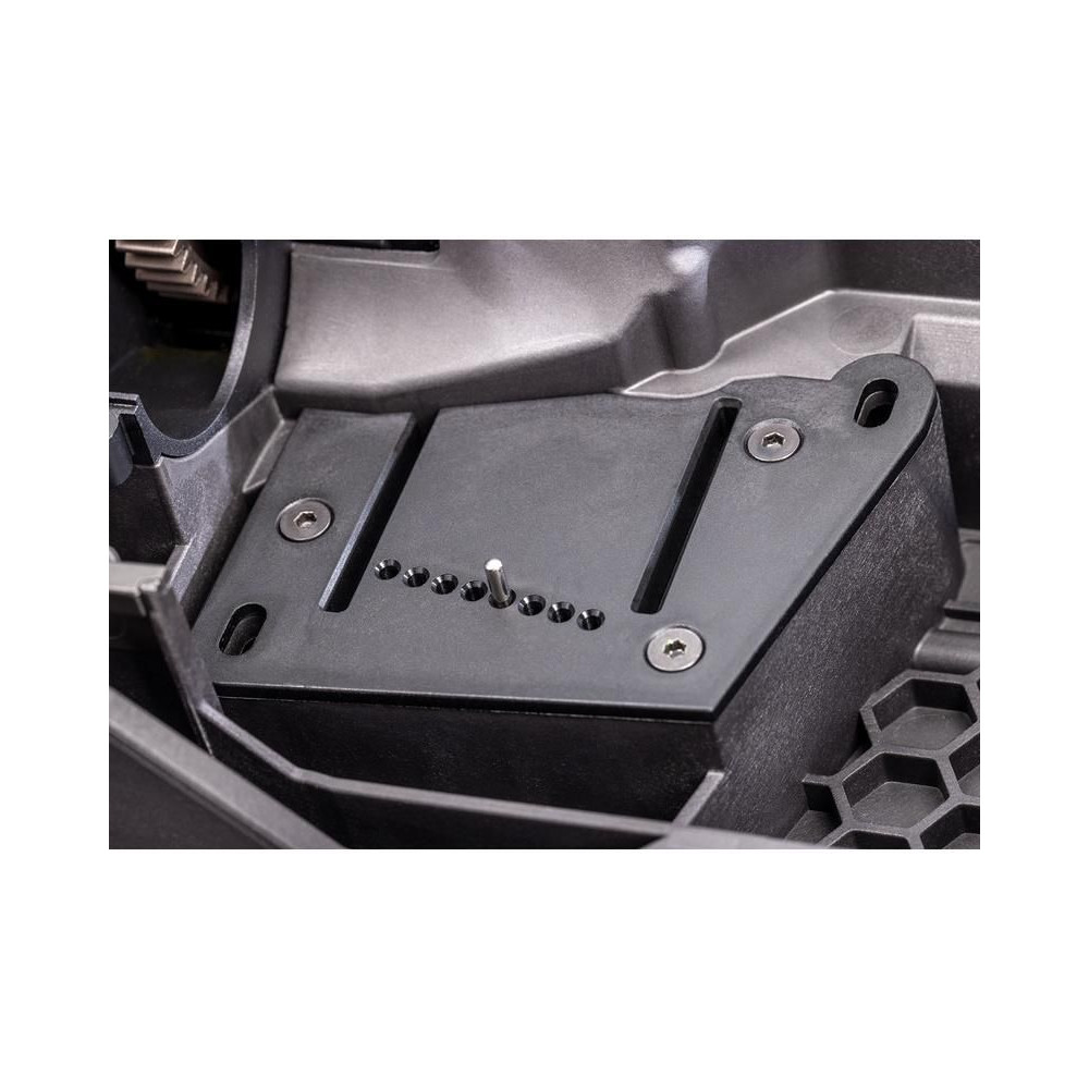 A Maxx Slash RC modell továbbfejlesztett motorágyat használ, két vezető horonnyal, amelyek biztonságosan rögzítik a motort a helyén. A reteszelőcsappal ellátott furatok segítségével a fogaskerék és a fogaskerék fogak közötti távolsága könnyen és ami a legfontosabb, pontosan beállítható.