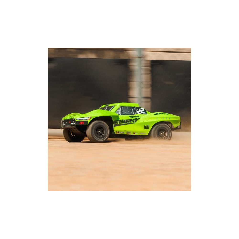 A Fury klasszikus rövidpályás autó kialakítással rendelkezik, karosszériával borított kerekekkel és Nerf oldalsó megerősítésekkel, így nem kell aggódnod az esetleges lökdösődések miatt. Az alacsony, sportos futómű lehetővé teszi a nagy sebességű kanyarodást. A modell kemény felületeken, kavicsos és alacsony füvön is használható. A kompozit váz a kemény ütközéseknek is ellenáll. A felhasznált fém fogaskerekek elég tartósak ahhoz, hogy esetleg váltóáramú meghajtásra lehessen frissíteni. A maximális tapadást a jól bevált dBoots Fortress abroncsok biztosítják.