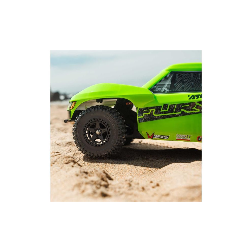 RC modell Arrma Fury Mega 550 1:10 RTR Basic egy megfizethető távirányítós Short Course autó 2WD-vel, független felfüggesztéssel, olajcsillapítókkal, arányos kormányzással és DC motorral. 2,4 GHz-es SLT RC készlet.