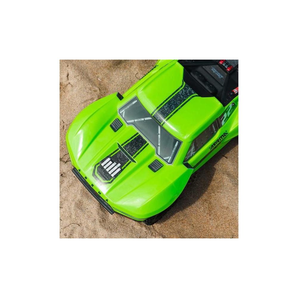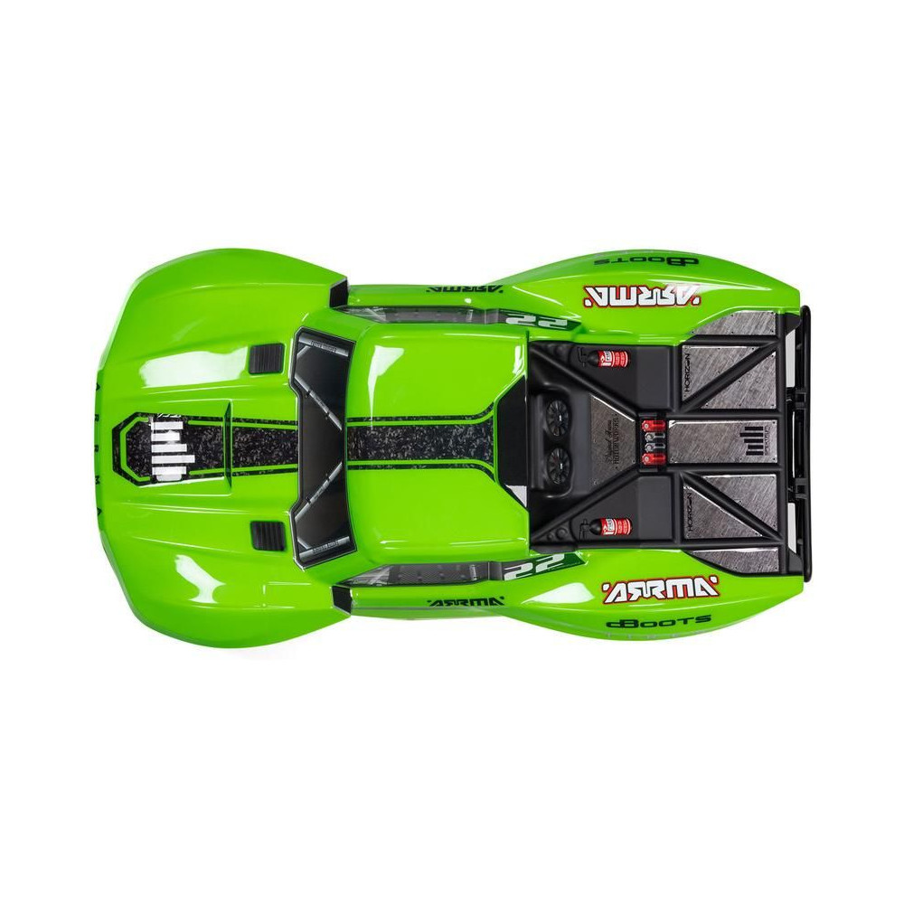 A kompozit alváz ARRMA tartóssággal készült. Célzott kialakítású, masszív, keskeny karosszériával rendelkezik, amely alul lapos, hogy ne akadjon el az akadályokon.