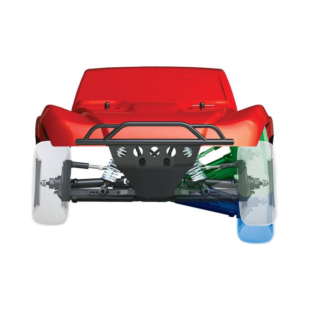 A Slash kiváló formatervezését megőrizték, beleértve a moduláris alvázszerkezetet, a csúcskategóriás, hosszú rugóútú felfüggesztési geometriát, az olajjal töltött lengéscsillapítókat, a súrlódó tengelykapcsolós hajtásláncot, valamint az első és hátsó differenciálműveket. A 4WD és a AC hajtásnak köszönhetően számtalan órányi tökéletes kezelhetőséget és villámgyors gyorsulást fogsz megtapasztalni. A maximális tapadást a BFGoodrich® Mud-Terrain™ T/A® engedéllyel rendelkező gumiabroncsok biztosítják, amelyek minden körülmények között kiváló tapadást biztosítanak.