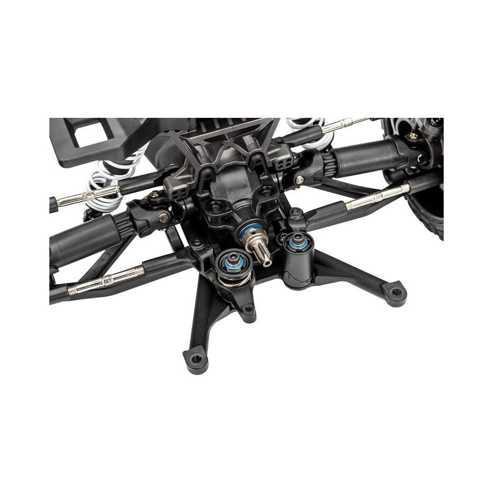 A karok hosszú lökete még az éles ütéseket is tompítja, és javítja a modell irányíthatóságát. Minden helyzetben precíz és gyors kormányreakciót biztosít. Állítható olajos lengéscsillapítók és X-gyűrűk segítik a végtelen szórakozást az alvázon.