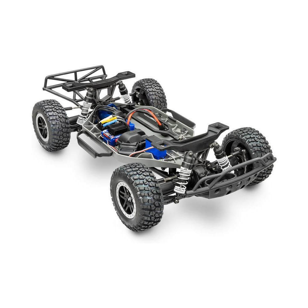 A Slash kiváló formatervezését megőrizték, beleértve a moduláris alvázszerkezetet, a csúcskategóriás, hosszú rugóútú felfüggesztési geometriát, az olajjal töltött lengéscsillapítókat, a súrlódó tengelykapcsolós hajtásláncot, valamint az első és hátsó differenciálműveket. A 4WD és a AC hajtásnak köszönhetően számtalan órányi tökéletes kezelhetőséget és villámgyors gyorsulást fogsz megtapasztalni. A maximális tapadást a BFGoodrich® Mud-Terrain™ T/A® engedéllyel rendelkező gumiabroncsok biztosítják, amelyek minden körülmények között kiváló tapadást biztosítanak.
