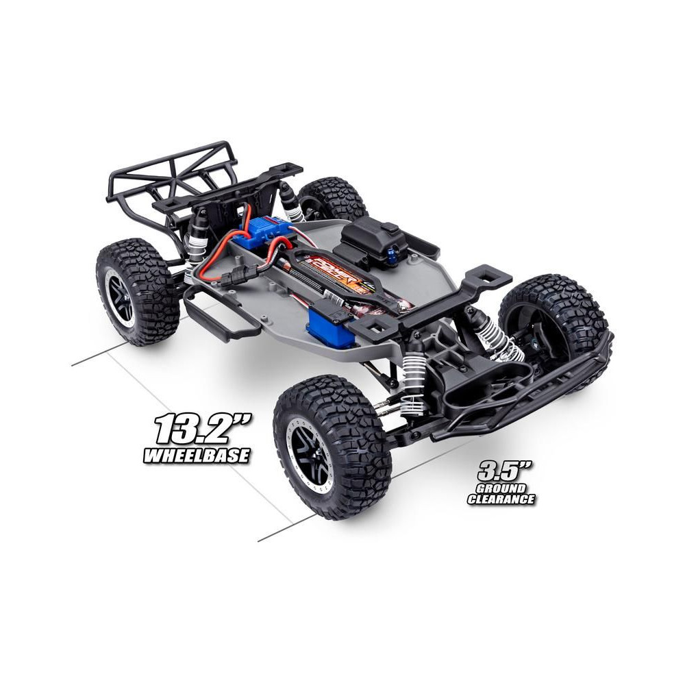 A Traxxas Slash egy 1:10 arányú RC autómodell 2WD meghajtással, amely akár 48 km/h sebességgel is haladhat. Teljesen összeszerelt állapotban van, és a dobozból kivéve azonnal vezetésre kész. Egy nagy teljesítményű Titan 550 12T egyenáramú motor hajtja, XL-5 szabályozóval. Az egyszerű Traxxas TQ 2,4 GHz-es RC készlet precíz mechanikát biztosít a precíz irányításhoz. NiMH akkumulátort és modern USB-C töltőt tartalmaz a biztonságos és gondtalan működés érdekében. Az új modell egy rögzítőelem nélküli karosszéria-rögzítési rendszert használ a könnyű akkumulátorcsere érdekében, valamint gyárilag beépített Extreme Heavy Duty felfüggesztési elemeket a nagy tartósság érdekében.
