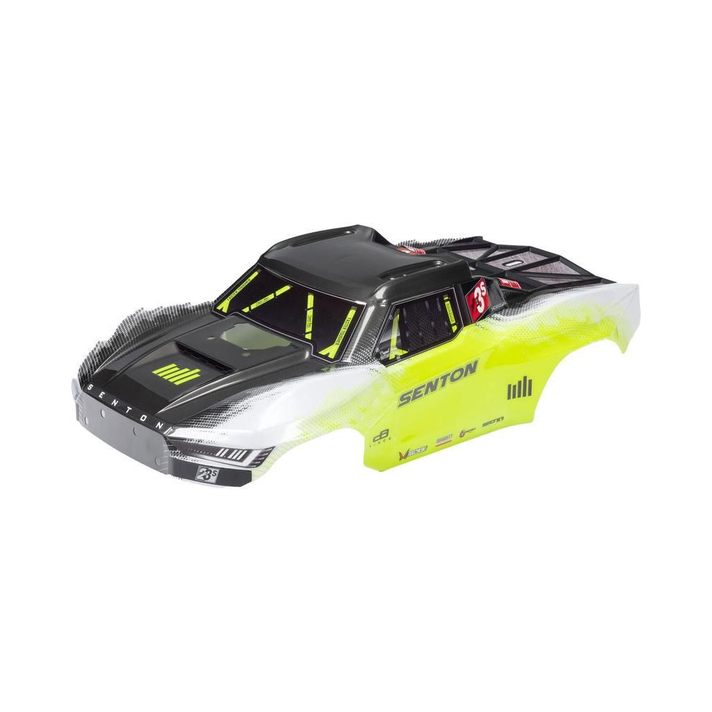 Arrma 1:10 Senton 223S BLX RC modellautó alkatrész: stoplik nélküli karosszéria, sárga. Előre vágva a gyors és egyszerű telepítés érdekében.