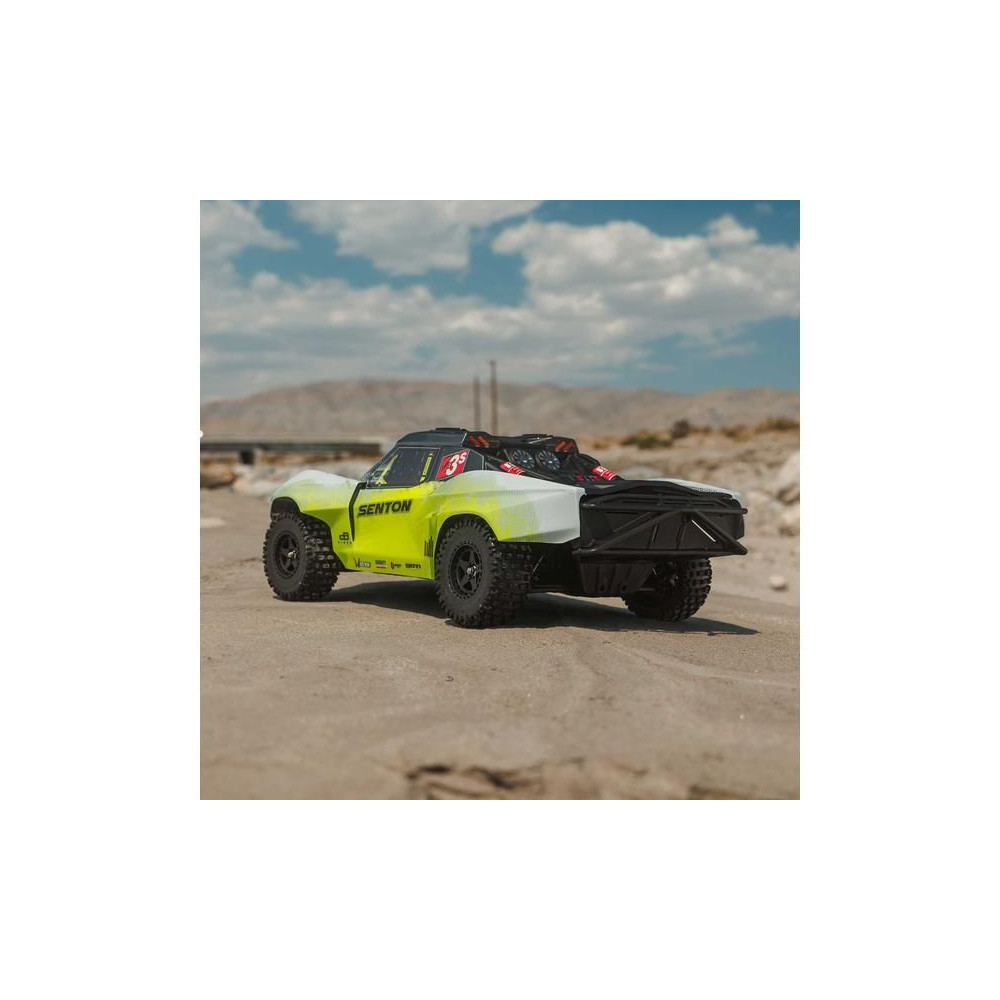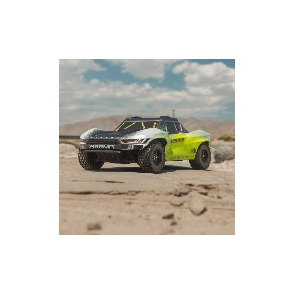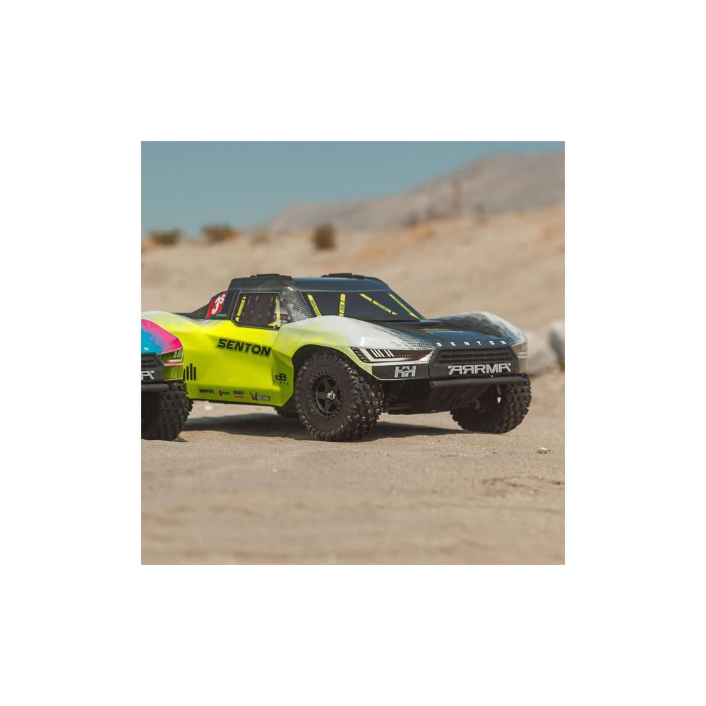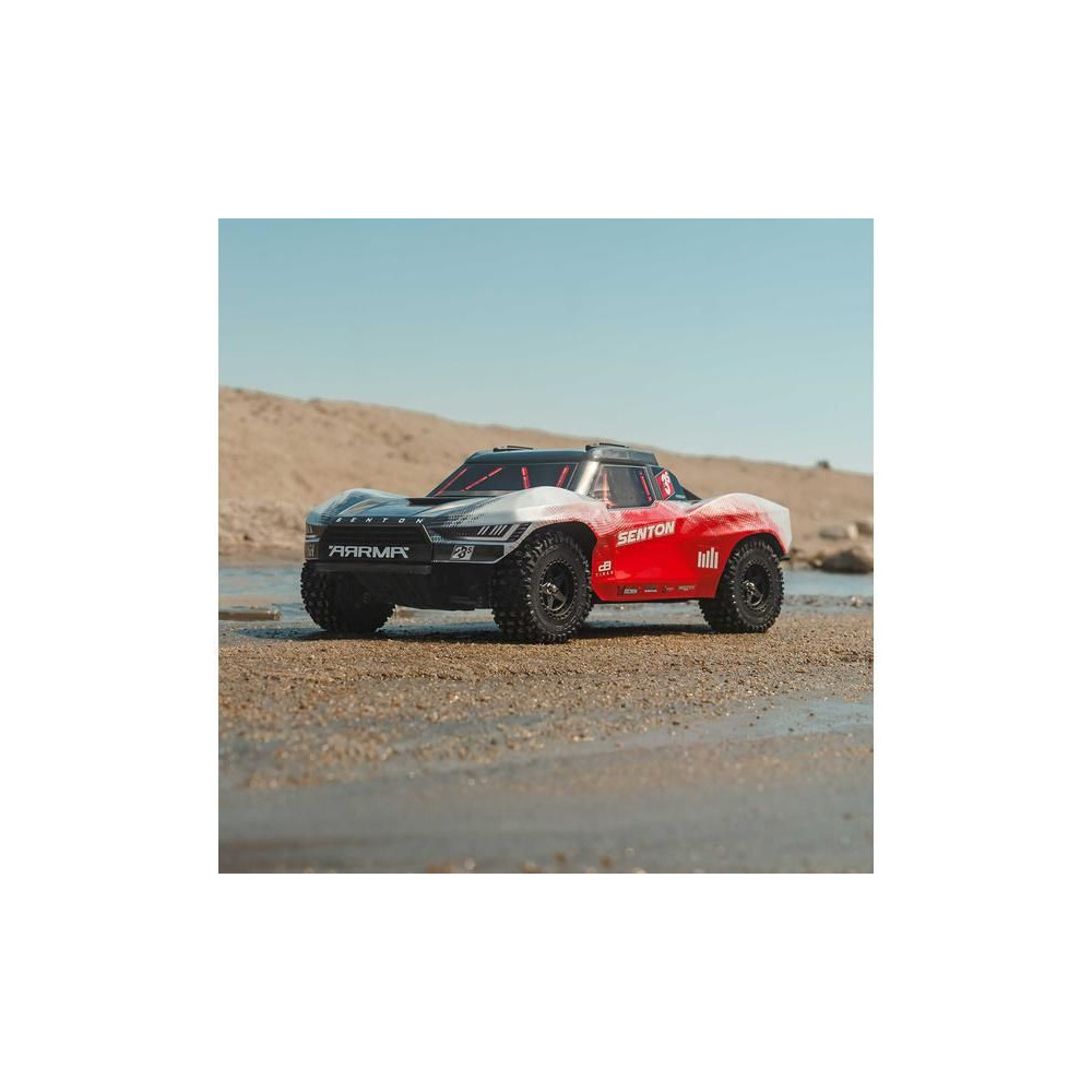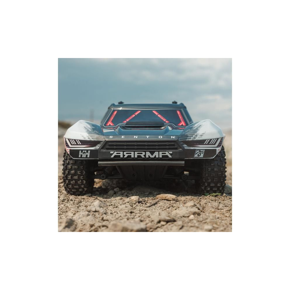Az Arrma Senton RC autómodell meglep majd szívósságával és tartósságával. Masszív kompozit vázzal rendelkezik, oldalsó Nerf megerősítésekkel és megemelt oldalfalakkal a szennyeződések bejutása ellen. Az alacsony alváz lehetővé teszi a nagy sebességű kanyarvételt. A modell alkalmas kemény felületekre, kavicsra és alacsony fűre. A használt fém fogaskerekek kellően tartósak a váltakozó áramú meghajtáshoz. A teljesítmény az első és hátsó differenciálmű segítségével jut el az egyes kerekekhez. A maximális tapadást a bevált dBoots Fortress SC gumiabroncsok biztosítják. A Spektrum SLT adó biztonságos, meghibásodás nélküli működést biztosít, a gondtalan vezetés érdekében a modell vízálló* alkatrészeket használ - Spektrum 2 az 1-ben 85A-es vevőszabályozót és Spektrum S662 szervovezérlést nagy nyomatékkal és fém fogaskerekekkel.